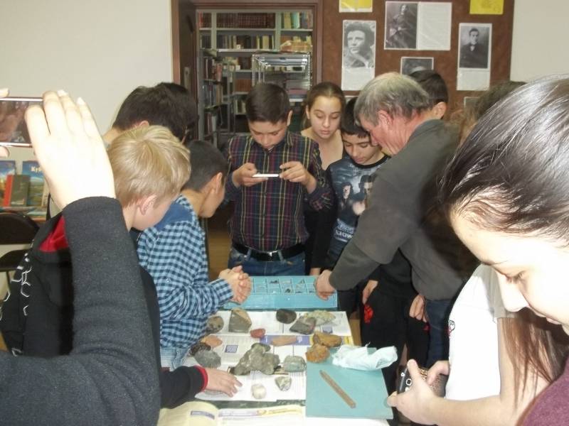| (Интеллектуально-познавательный устный журнал ) В рамках «Недели детской и юношеской книги». К 80-летию Краснодарского края 29.03.2017. МБОУСОШ №16. «Люблю свой край» с таких поэтических строчек началась встреча в читальном зале МКУК « ОМЦБ»с ребятами пришедшими на мероприятие посвящённое 80-летию Краснодарского края. На мероприятие пригласили краеведа - любителя Катунова Б.И. Собирателя минералов, любителя-альпиниста,он рассказал и показал школьникам коллекция камней и минералов собранную им в Отрадненском предгорье. Такие необычные встречи побуждают ребят более пристально изучать природу родного края. | |