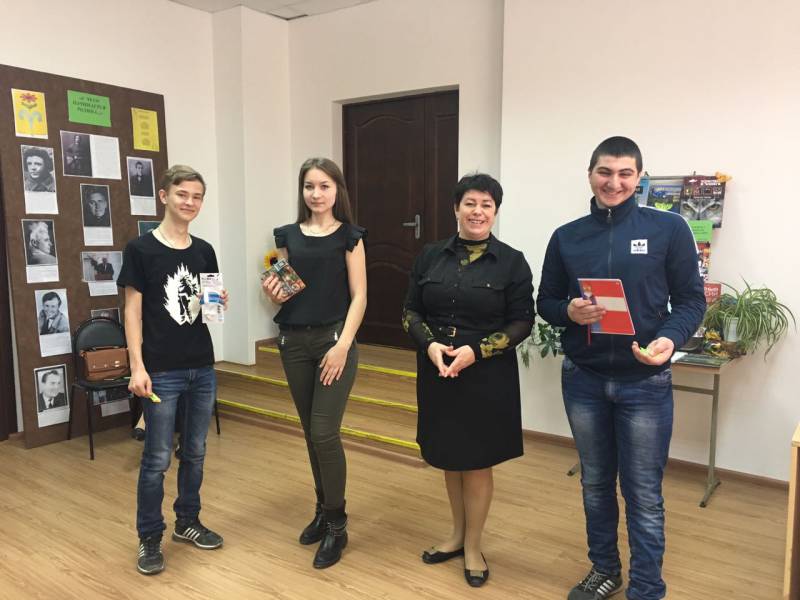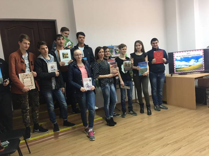 | В рамках Недели детской и юношеской книг, 30 марта в «Отрадненской межпоселенческой центральной библиотеке» состоялась интеллектуально познавательная игра для учеников 9-х классов МАОУСОШ № 9. Так как, в 2017 году Краснодарский край отмечает свой 80-летний юбилей, библиотекари подготовили для юношеской категории читателей увлекательное, познавательное мероприятие, где ребята смогли продемонстрировать свои знания по краеведению и узнать много нового о родном крае. Победители игры получили памятные призы. Учащимся также был предложен рекомендательный обзор литературы по краеведению. | |