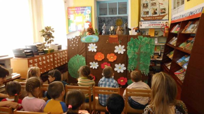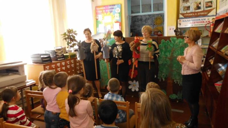 | (Кукольный театр) 30.03.2017г., д/с №5, 9 человек. В рамках проведения Недели Детской и Юношеской книги библиотекари районной детской библиотеки провели для воспитанников детского сада № 5 театрализованное кукольное представление «Как заяц Прошка друга искал». Сказка была посвящена дружбе, доброте и отзывчивости, тем человеческим качествам, которые помогают людям обрести настоящих друзей. После представления дети участвовали в викторине. | |