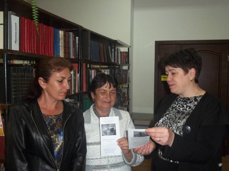 | Информационная акция. Центральный парк, библиотека 24 чел. 26.04.2017. 26 апреля 1986 года – эта дата будет помниться еще нескольким поколениям украинцев, белорусов и россиян. В этот день произошла ужасная техногенная авария, катастрофа на Чернобыльской атомной электростанции. Библиотекари «ОМЦБ» всегда в этот день проводят мероприятия, целью которых, является напоминание о трагическом событие изменившем жизнь сотен тысяч людей. Сегодня работники районной библиотеки провели в центральном парке станицы информационную акцию, предлагая землякам, ознакомиться с памяткой, рассказывающей о событии, произошедшем 26 апреля 1986 года. Библиотекарь Милькина Е.Г. познакомила всех желающих с историей той страшной беды, сопровождая свой рассказ рекомендательным списком литературы и информационными листовками. | |