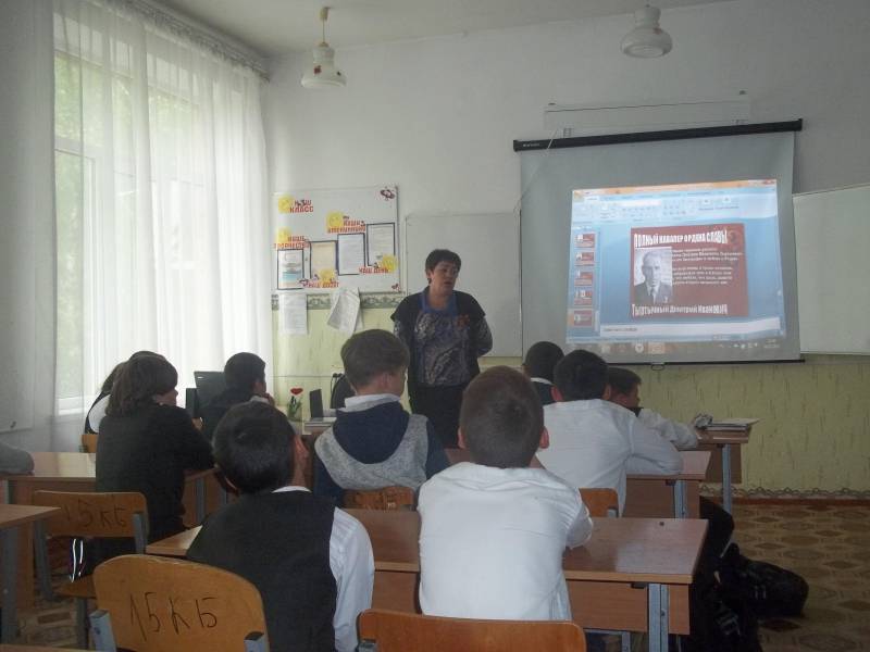 | Урок мужества. МБОУСОШ №17. В рамках месячника «И оживут мгновения войны» посвященного празднованию Дня победы в 2017 году, работники «ОМЦБ» подготовили и провели для учащихся МБОУСОШ №17 урок мужества, целью которого стало воспитание у юношества чувства сопричастности к тем великим и трагическим событиям ВОВ, которые оставили неизгладимый след практически в каждой семье. Библиотекари рассказали ребятам о подвигах совершённых нашими земляками, стараясь вызвать у ребят чувство гордости и признательности к людям, которые ценой своей жизни принесли нам великую Победу. В мероприятии использовались документальные хроники времён войны 1941-45 годов. Учащимся рекомендовали книги о войне, в том числе и книгу С.К. Филлипова «Не померкнет никогда» о воинах нашего Предгорья. | |