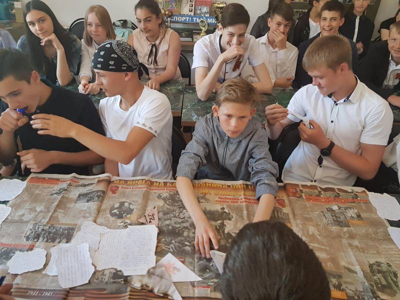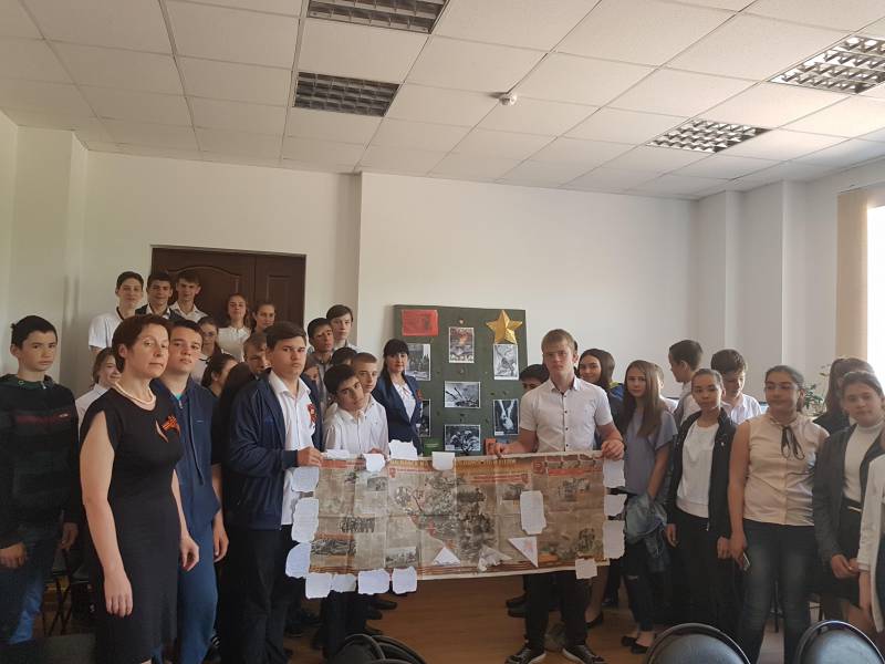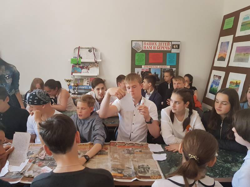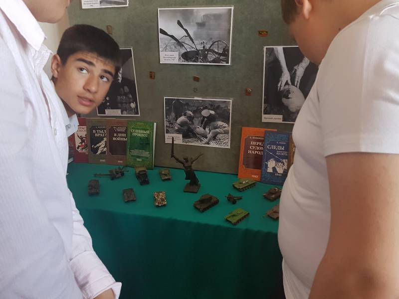 | 5 мая 2017 г. В рамках месячника «И оживут мгновения войны» посвященного празднованию Дня победы в 2017 году, работники «ОМЦБ» подготовили и провели для учащихся МАОУСОШ № 1 им. А.С. Колесника литературно тематическую композицию - «От героев былых времен». Гостей библиотеки ждала необычная книжная выставка, на которой были представлены лучшие произведения героико-патриотической тематики из фондов библиотеки, а так же модели танков времен Великой Отечественной войны. Выставка пользовалась успехом не только у мальчиков. В начале мероприятия библиотекари провели экскурс в историю военных лет, особенно подробно остановились на самых значимых сражениях ВОВ: оккупация Ленинграда; подвиг героев Курской дуги, штурм Берлина; оккупация Сталинграда, клятве панфиловцев: "Ни шагу назад, за нами Москва!". Мероприятия сопровождалась элементами электронной презентации, демонстрацией видеороликов документальной хроники событий ВОВ, военными песнями. По окончании мероприятия дети сделали совместную аппликацию из писем своим предкам. На мероприятие присутствовало 50 человек. | |