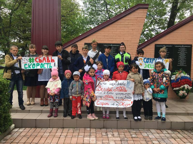 В день празднования Великого Дня Победы школьники Отрадненского района присоединились к Всероссийской семейной акции СБАВЬ СКОРОСТЬ! СОХРАНИ ЖИЗНЬ!!! Дети обратились к водителям с просьбой беречь свою жизнь и жизнь пешеходов, соблюдая ПДД, тем самым оградив себя от беды! А.С. Иваненко, инспектор ИАЗ ОГИБДД ОМВД России по Отрадненскому району, лейтенант полиции | |