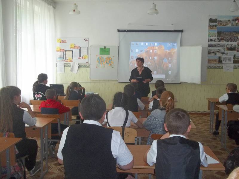 | Час актуальной информации. 11.05.2017 МБОУСОШ №17, 20 чел. Библиотекари МКУК «ОМЦБ» 11 мая отправились в гости к ученикам 6-х классов МБОУСОШ № 17. Для ребят был подготовлен час актуальной информации, в рамках Года экологии. Мир природы удивителен и прекрасен. Однако, далеко не все способны видеть эту красоту: многообразие цвета, форм, разнообразие красок неба, листьев, воды… умение «смотреть» и «видеть», «слушать» и «слышать» не развивается само собой, не дается от рождения в готовом виде, а воспитывается. Именно об этом шла речь на мероприятии, библиотекари сопровождали информационный материал видеороликами о проблемах экологии. Учащимся было предложено придумать решение экологической проблемы нашей планеты. Ребята активно включились в дискуссию. Было предложено использовать вторичное сырьё, организовывать экологические десанты, экономить природные ресурсы и др. | |