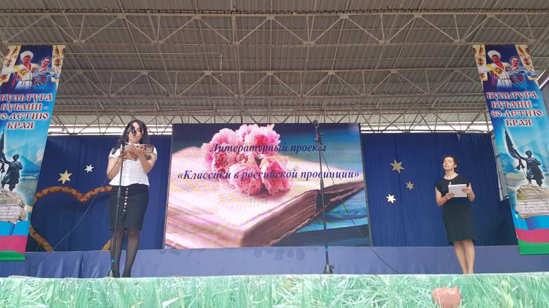 | Информация о проведенном мероприятии «Классики в российской провинции». Сегодня 1 июня в День защиты детей в муниципальном образовании Отрадненский район впервые стартовала акция «Классики в российской провинции». По инициативе Ассоциации малых туристских городов, целью его является содействие культурному развитию жителей малых городов России. В рамках акции местные жители в течение нескольких часов на центральной площади читали в микрофон произведения кубанских классиков, чье творчество связано с историей Отрадненского района. Так совпало, что не только, у Краснодарского края в этом году юбилей, в 2017 исполнилось бы 90 лет - поэту, члену Союза писателей РФ, лауреату Международной премии им. М.А. Шолохова, лауреату краевой премии им. К. Россинского, лауреату премий им. Е. Степановой, Н. Островского, А. Знаменского, международного фестиваля лирической песни «Эоловы струны». Заслуженному учителю Кубани, отличнику народного образования РСФСР, заслуженному работнику культуры РСФСР, почетному гражданину города Краснодара – Виталию Борисовичу Бакалдину. Ребята нашего района активно включились в празднование юбилея любимого поэта. На главной сцене станицы Отрадной выступили: Рудова Ирина с произведением «О деревьях»; Яковенко Александра «Я не рос среди берез»; Овчаренко Валерия «Красногорье - дорога»; Нехов Даниил «Были у мышки сынишки»; Авакимова Виктория «Были у мышки сынишки»; Созинова Валерия «Леса, снега…». Говоря о писателях Кубани, нельзя не упомянуть Ивана Николаевича Бойко. Родился на хуторе Труболет Отрадненского района Северо-Кавказского, ныне Краснодарского края. Когда по инициативе А. Н. Яковлева и Т. И. Заславской началась ликвидация так называемых «неперспективных деревень», написал повесть «Труболет», после чего его родной хутор Новоурупский, почти исчезнувший, начал заново строиться. Но хутору жизненно необходим был мост через Уруп. Тогда Бойко пишет повесть «Нужен мост». И мост был построен. Произведения Ивана Бойко высоко ценили Леонид Леонов, Валентин Распутин, Михаил Алексеев, Семён Бабаевский. Произведение под названием «Гимн Хате» прочел самобытный поэт Отрадненского района Дорошенко Лев Николаевич. Петр Ефимович Придиус (1932-2003гг.) - кубанский писатель-публицист, журналист, общественный деятель, член Союза журналистов РФ и Союза писателей РФ. С отрывком из его рассказа «Эпопея деда Авдея» выступила сотрудница «ОМЦБ» Чичелова Эллина Армовна. Не менее уважаемый писатель на Кубани Немченко Гарий (Гурий) Леонтьевич, с отрывком из его сказки «Зима на носу» выступила сотрудница «ОМЦБ» Цапурова Н.Н. По окончанию мероприятия на площади транслировали мультипликационные фильмы, снятые по сценарию Г.Л. Немченко. Хотелось бы отметить, что в Отрадненском районе живут не безразличные к Кубанской классике люди. Отраднецы с удовольствием принимают участие в мероприятиях популяризирующих чтение, а так же становятся их зрителями. | |