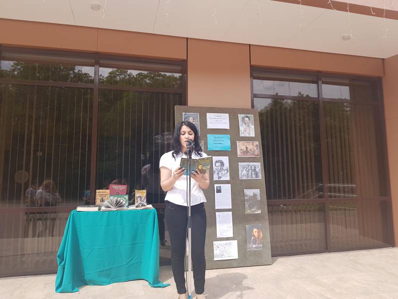 | Вечером, 6 июня 1799 года, солнце заходило, не зная о том, что у него появился соперник. Блестело золото зари в оконных стеклах, пряно пахла на пустырях нагретая дневным жаром крапива. А в легких сумерках вдоль улиц заструился юный и нежный аромат. Цвели березы. И вдруг по всей Москве зазвонили колокола. Они гремели у Неглинных и Покровских ворот, на Арбате, на Тверской, в Китай-городе. Это был красный праздничный звон. В семье Пушкиных родился мальчик – будущее солнце русской поэзии. Москвичи выбегали на улицы, бросали вверх свои картузы и кричали “Ура!” Правда, эти крики и звон колоколов не имели отношения к мальчику. В Москве получили известие о рождении внучки императора Павла 1. Но все равно приятно, что так празднично был отмечен день, когда на свет явился русский гений. Прошло время, и традиция не изменилась. 6 июня 2017 года в Отрадненском районе стартовала Всекубанская акция «Читаем Пушкина», районные библиотеки приняли в ней активное участие. Участниками праздника стали читатели библиотек, учащиеся общеобразовательных учреждений, отдыхающие в летних пришкольных лагерях дневного пребывания, работники учреждений культуры. В «ОМЦБ» мероприятие проходило на центральной площади станицы Отрадной. Первым блоком акции стала игровая орбита, для участников летнего лагеря муниципального бюджетного образовательного учреждения дополнительного образования Центра детского творчества станицы Отрадной. Ребята в форме подвижных, интеллектуальных игр-викторин продемонстрировали свои знания о жизни и творчестве поэта. Дети упражнялись в ловкости, катали «наливное яблочко», собирали шишки, ходили в дозор. Блок закончился рисунками на асфальте героев книг Александра Сергеевича Пушкина. Следующим этапом стали громкие чтения произведений А.С. Пушкина, которые декламировали в микрофон библиотекарями, работниками районного Дома культуры, а так же читателями на ступенях РДК. Мероприятие привлекало внимание граждан, хотелось бы отметить, что практически все зрители знали какой сегодня праздник, некоторые даже говорили, что библиотека не позволяет об этом забыть! Районной детской библиотекой в течение дня для читателей, которые посетили библиотеку, проводилась викторина «Там, на неведомых дорожках». Дети с удовольствием вспоминали сказки Пушкина, отвечали на вопросы викторины «Сказки из Лукоморья», угадывали его стихотворения. По желанию ребята читали полюбившиеся стихотворения А.С.Пушкина «Зимнее утро», «Зимняя дорога», «У лукоморья дуб зеленый» и др. Для воспитанников детского сада № 5 был проведен литературный праздник «Я в гости к Пушкину спешу...». Дети с большим удовольствием совершили путешествие, делая остановки в каждой сказке поэта, отвечали на занимательные вопросы, с помощью мимики и жестов показывали героев сказочных произведений автора, отгадывали загадки. Участвовали в конкурсе «У лукоморья дуб зеленый». В акции приняло участие 115 человек. | |