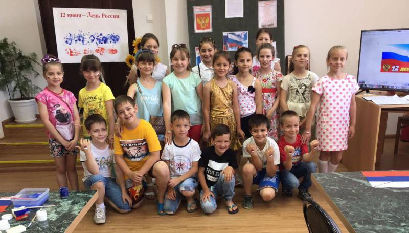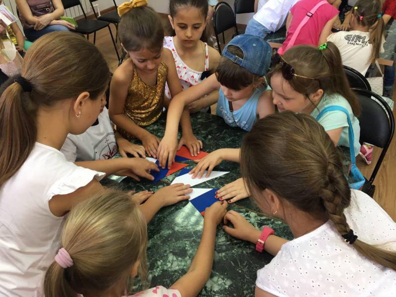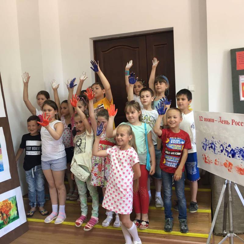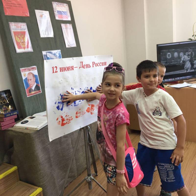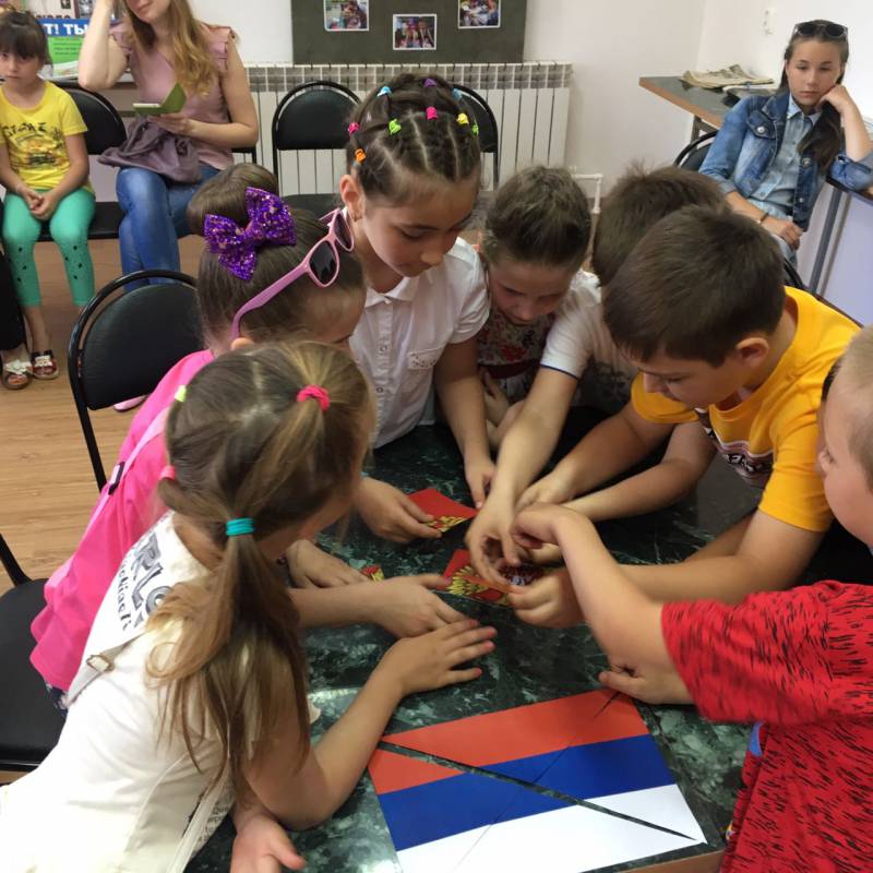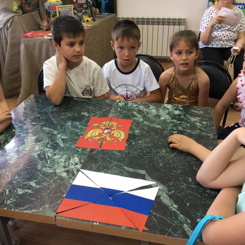 | Устный журнал, посвященный Дню России. 8 июня в «Отрадненской межпоселенческой центральной библиотеке» состоялся устный журнал, который был приурочен ко Дню России. В гости к библиотекарям пришли ученики МАОУСОШ № 9. В ходе мероприятия ребята познакомились с Российской символикой, из пазлов собрали Российский флаг и герб, совместно спели Гимн России. Затем дети весело и дружно отвечали на вопросы викторины по русской истории, угадывали, каким героям русских народных сказок принадлежат предметы из волшебного сундучка, разгадывали загадки. В заключение мероприятия ребята самостоятельно нарисовали флаг России своими ладошками. В качестве подарка всем участникам праздника нарисовали на руке и лице флаг России. Мероприятие сопровождалось видеоматериалами о нашей Родине. | |
