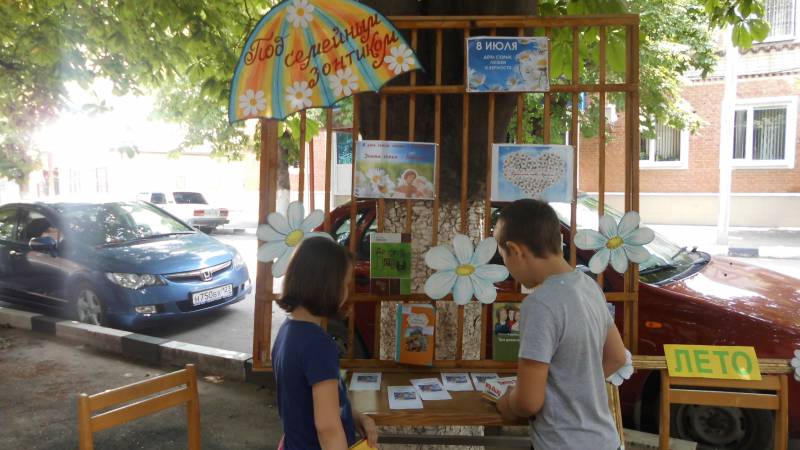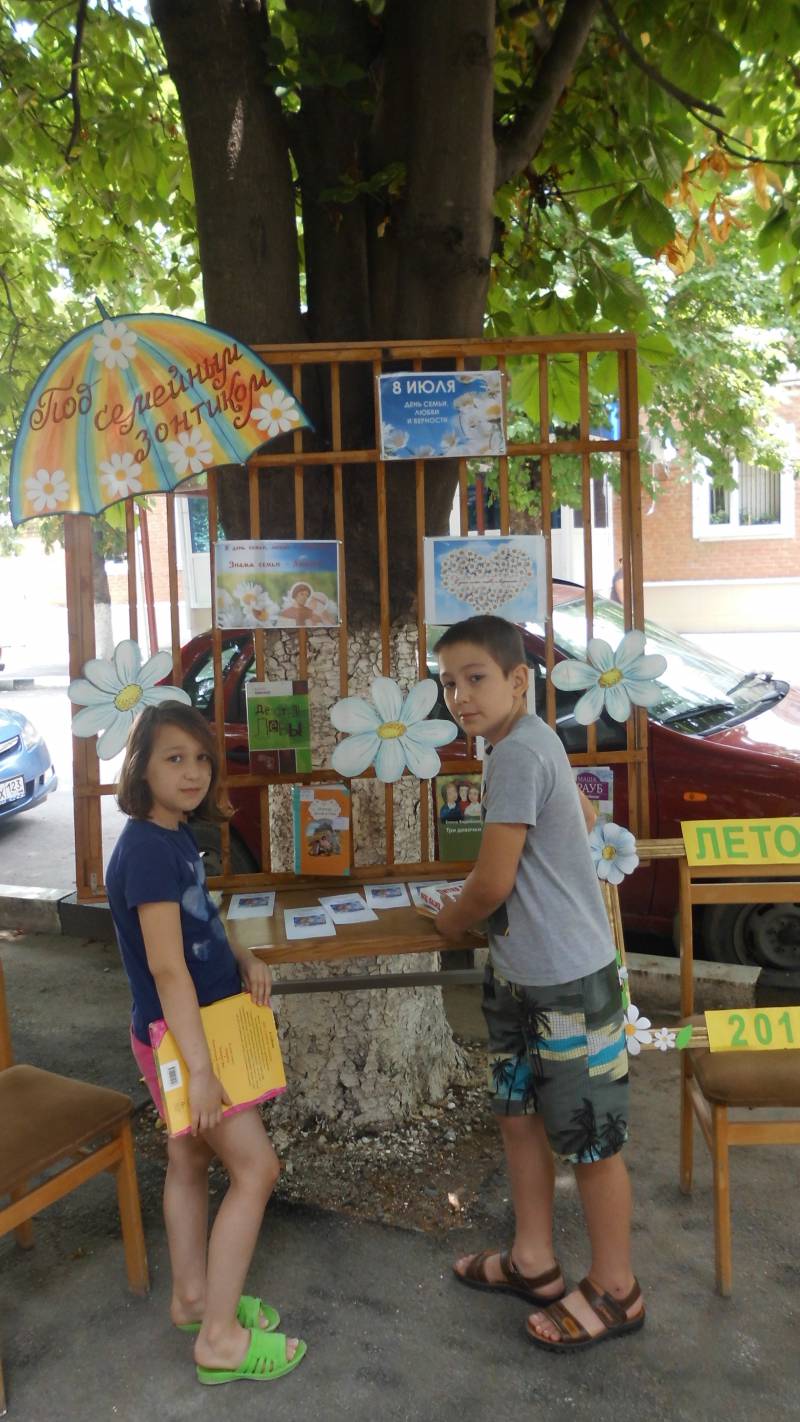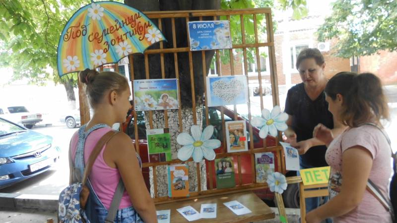 | Информация о мероприятиях, проведенных районных библиотеках муниципального образования Отрадненский район. В районных библиотеках муниципального образования Отрадненский район отметили ставший традиционным Всероссийский день семьи, любви и верности. Об истории необыкновенной любви Петра и Февронии, ставших образцами супружеской верности, взаимной любви и семейного счастья ещё при жизни, об истории самого праздника, ставшего праздником всероссийского масштаба, говорят в библиотеках у организованных книжных выставок, информационных стендов, да и просто на улице нашей станицы. «Крепкая семья — крепкая Россия» - тематическая акция, которая состоялась в районной детской библиотеке 7 июля. Информационный стенд и книжная выставка были организованны прямо перед входом в здание библиотеки. Благодаря красочности и информативности выставки, равнодушных не было, книгами интересовались, как взрослые, так и дети. Библиотекари рассказывали всем желающим легенду о необыкновенной любви Петра и Февронии, раздавали информационные буклеты, а так же рекомендовали книги о семье для детей и их родителей. В «Отрадненской межпоселенческой центральной библиотеке» мероприятие «Благослови, Господь семью — творения венец» - говорящая книжная выставка, так же состоялось 7 июля и проходило в течение всего дня. В читальном зале районной библиотеки демонстрировались видео материалы, посвященные Дню любви, семьи и верности, экспонировался информационный стенд, а на абонементе была представлена книжная выставка, на тему семьи в классической литературе. Акция привлекала внимания детей и подростков, а так же взрослых читателей библиотеки. Практически каждый читатель прослушал историю возникновения праздника, познакомился с легендой, а так же узнал о символе Дня семьи, любви и верности – ромашке. Для всех юных читателей библиотекари с удовольствием рисовали эмблему праздника на руках. Районные библиотеки в этот день обслужили 40 человек. | |