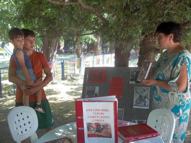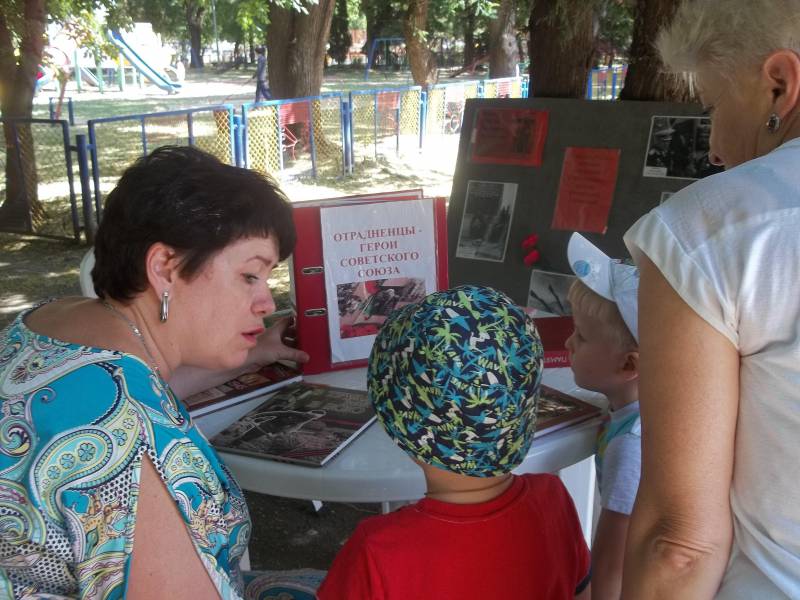 | В годы Великой Отечественной войны на территории современного Отрадненского района располагалось три района: Отрадненский, Спокойненский, Удобненский. Оккупация Спокойненского района началась 14 августа 1942 г. и продолжалась по 10 января 1943 г. Оккупация Отрадненского и Удобненского районов продолжалась с 11 августа 1942 г. по 21 января 1943 года. Сегодня, 11 августа 2017 года, библиотекари Отрадненской межпоселенческой центральной библиотеки вышли на улицы нашей станицы для того, чтобы напомнить своим землякам о столь скорбной дате. Библиотекари подготовили читальный зал под открытым небом, в котором были подобраны материалы, рассказывающие об истории нашего района в период оккупации, а также книги, повествующие о Кубани в годы Великой Отечественной войны. Жителям нашей станицы был представлен информационный стенд, книжный развал, информационные листовки. Хотелось бы отметить, что многие жители нашего района помнят и чтят свою историю, поэтому вопрос о том, когда началась оккупация нашего района, не вызвал затруднение у большинства респондентов. | |
