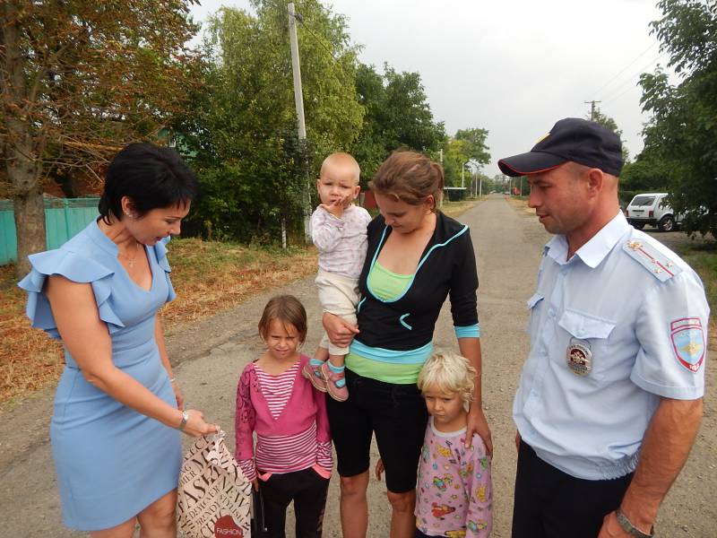 В Отрадненском районе в преддверии Дня знаний сотрудники отделения по делам несовершеннолетних и члены Общественного совета встретились с ребятами из многодетных семей, и семей, находящихся в трудной жизненной ситуации. Полицейские вручили ребятам школьно-письменные принадлежности и пожелали успехов в новом учебном году. Ребята с удовольствием приняли подарки от полицейских. Инспектор ОПДН старший лейтенант полиции Сергей Озорнин напомнил ребятам о соблюдении «детского закона», о правилах поведения в учебных заведениях, на улице и дома. Член Общественного совета Галина Высоцкая побеседовала с родителями о недопустимости применения насилия к детям, о защите прав и законных интересов ребёнка. Т. Чибирикова, специалист направления по связям со СМИ ОМВД России по Отрадненскому району | |