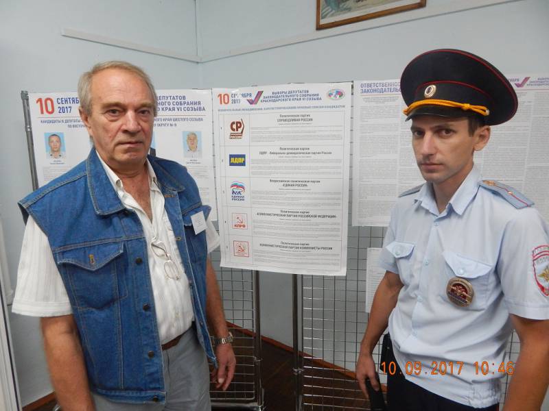 В ходе проверки общественники пообщались с членами участковых избирательных комиссий, с гражданами, которые пришли на выборы, проверили исполнение служебных обязанностей сотрудниками полиции. В ходе проверки избирательного участка каких-либо нарушений выявлено не было. Член общественного совета, председатель районного Совета ветеранов Геннадий Кисель отметил, что сотрудники полиции добросовестно исполняют свои обязанности, нареканий в их адрес нет. Т.Н. Чибирикова, специалист направления по связям со СМИ ОМВД России по Отрадненскому району | |