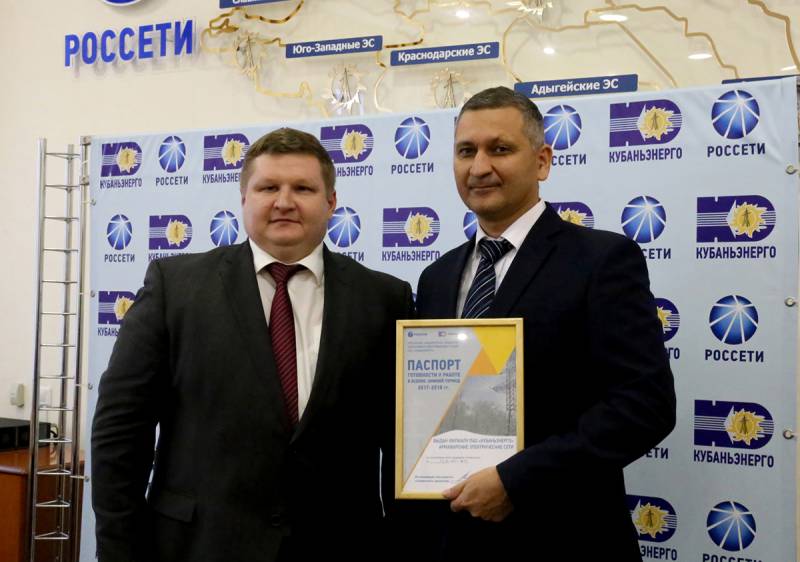 В состав комиссии вошли представители Минэнерго России, Ростехнадзора, «Россетей», министерства ТЭК и ЖКХ Краснодарского края, ГУ МЧС России по Краснодарскому краю, Кубанского РДУ. Паспорт готовности к работе в ОЗП 2017-2018 гг. вручил директору филиала ПАО «Кубаньэнерго» Армавирские электрические сети Рустаму Магдееву заместитель генерального директора – Главный инженер Кубаньэнерго Игорь Шишигин. В рамках проверки готовности электросетевого комплекса Кубани к ОЗП члены комиссии посетили несколько энергообъектов Кубаньэнерго, проверили укомплектованность аварийного резерва, приняли участие в общесетевой тренировке по ликвидации повреждений на линии электропередачи. Комиссия положительно оценила результаты тренировки, отметив готовность энергетиков к ликвидации возможных технарушений, которые характерны для южных регионов в зимний период. Персонал компании подтвердил свою готовность к работе в ОЗП, выполнив в строгом соответствии с установленными сроками все запланированные мероприятия. Территория ответственности Армавирского филиала Кубаньэнерго включает Гулькевичский, Кавказский, Новокубанский, Отрадненский, Успенский районы, пригород Армавира, и перед энергетиками стоит задача по обеспечению надёжности энергоснабжения потребителей в любых, даже самых сложных погодных условиях. – Хочу поблагодарить персонал за ответственную и качественную работу при подготовке к осенне-зимнему периоду, – сказал Игорь Шишигин. – Профессионализм наших сотрудников на местах – залог качественно проведенных ремонтов и надежности работы энергосистемы каждый день. В течение года специалисты электросетей выполнили ёмкую программу по ремонту электросетевого хозяйства. В рамках подготовки к зиме специалисты Армавирского филиала Кубаньэнерго выполнили комплексный ремонт 11 крупных питающих центров напряжением 35-110 кВ, 55 трансформаторных подстанций, более 375 километров ЛЭП, расчистили 55 га трасс линий различного класса напряжения. При подготовке к прохождению ОЗП прошли тренировки персонала. Оперативный персонал отработал действия по плавке гололеда на проводах и грозозащитных тросах высоковольтных линий электропередачи. Проведено обучение по вопросам охраны труда, включая инструктажи по особенностям работ в аварийных ситуациях в условиях низких температур. В течение года компания проводит командно-штабные учения с профильными министерствами и ведомствами, привлечением сотрудников МЧС, правоохранительных органов, десятков единиц техники, с проведением реальных тренировок на объектах. Аварийный резерв укомплектован на 100%. Особое внимание уделено подготовке резервных источников электроснабжения. Они обеспечат энергоснабжение важных объектов, в том числе социально значимых, в случае возникновения нештатных ситуаций. Для незамедлительного реагирования на нештатные ситуации в Кубаньэнерго сформированы аварийные мобильные бригады. Они укомплектованы современным инструментом, средствами индивидуальной и коллективной защиты, спецодеждой и связью. Бригады имеют опыт проведения аварийно-восстановительных работ за пределами эксплуатационной ответственности Кубаньэнерго. Во всех филиалах Кубаньэнерго заключены соглашения о взаимодействии по предотвращению и ликвидации последствий нештатных ситуаций 