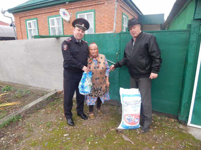 Отделом МВД России по Отрадненскому району особое внимание уделяется семьям сотрудников, погибших при исполнении служебного долга. Начальник ОРЛС ОМВД России по Отрадненскому району подполковник внутренней службы Д.В. Панасенко совместно с представителем Общественного совета при ОМВД, председателем первичной ветеранской организации ОМВД подполковником милиции в отставке Г.В. Ивановым по месту жительства посетили семьи: Рудьевых, Коровушкиных. По сложившейся традиции в день памяти сотрудников, погибших при исполнении служебных обязанностей полицейские оказали помощь семьям погибших при исполнении служебных обязанностей, которым вручили продуктовые наборы и по мешку сахара, пригласили на торжественное мероприятие, посвященное Дню сотрудника органов внутренних дел. | |