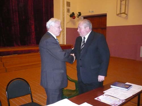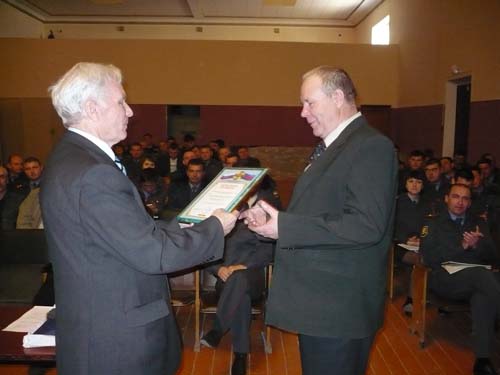 Дата публикации: 9 апреля 2012 ![]() ![]() ![]() Первый заместитель председателя Совета краевой ветеранской организации ветеранов ОВД и ВВ полковник милиции в отставке Александр Семенович Гребенюк встретился с личным составом Отдела МВД России по Отрадненскому району, Советом ветеранов. Александр Семенович наш земляк уроженец с. Рудь Отрадненского район, рассказал о своей трудовой и служебной деятельности в органах внутренних дел. Довел до личного состава итоги работы ветеранской организации края, о лучших ветеранских организациях, занявших почетные места по итогам работы. Ветеранская организация ОМВД России по Отрадненскому району на хорошем счету в ветеранской организации ГУ МВД России по Краснодарскому краю. В торжественной обстановке Александр Семенович наградил председателя первичной ветеранской организации ОМВД России по Отрадненскому району подполковника милиции в отставке Геннадия Васильевича Иванова премией и почетной грамотой за 1-е место «За активное участие по профилактике среди несовершеннолетних». А начальнику Отдела МВД России по Отрадненскому району полковнику полиции Александру Геннадьевичу Гаврик подарил книгу «Ветераны Кубанской милиции вспоминают» и пожелал успехов в служебной деятельности. В конце встречи Александр Семенович выразил свое мнение о реформировании системы МВД РФ, обратился к личному составу по вопросу соблюдения дисциплины и законности, вежливому обращению к гражданам, проявлять высочайшую культуру речи, на примерах воспитывать молодых сотрудников органов внутренних дел, совершенствовать профессиональную подготовку личного состава. Руководителям служб осуществлять действенный контроль за служебной деятельностью подчиненных сотрудников. Отметил, что полиция должна служить народу, защищать граждан от преступных посягательств. Т. Чибирикова, специалист направления по связям со СМИ, майор внутренней службы | ||||||||||||||||||||||||||||||||||||||||||||||||||||||||||||||||||||||||||