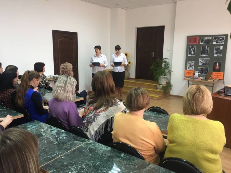| «Материнский подвиг» - урок мужества, в рамках плана межрайонного взаимодействия между Отрадненским и Успенским районами «Материнский подвиг» - урок мужества, в рамках межрайонного взаимодействия с Успенским районом состоялся в Отрадненской межпоселенческой центральной библиотеке. Так как встреча проходила в преддверии Дня матери, тему мероприятия долго не выбирали. Работники «ОМЦБ» подготовили и провели показательное мероприятие. Так уж случилось, что наша память о войне и все представления о ней мужские. Это и понятно: ведь воевали в основном мужчины. Но с годами люди всё больше и больше начинают постигать бессмертный подвиг женщины на войне, её величайшую жертву, принесённую на алтарь Победы. Нельзя не вспомнить матерей, чьи сыновья добыли нашей стране выстраданную Победу. Эти простые советские женщины отдали во имя свободы Родины самое дорогое, что у них было - своих сыновей. Мероприятие посетили библиотекари Отрадненского района: Подгорно-Синюхинской, Попутненской, Отрадненской № 31, Садовской и Удобненской сельских библиотек. Коллеги из Успенского района рассказали о своем опыте проведения мероприятий по данному направлению. Библиотекари обменялись сценариями, материалом для проведения мероприятий. Следующим блоком программы стала экскурсия в районную детскую библиотеку, чаепитие. | |