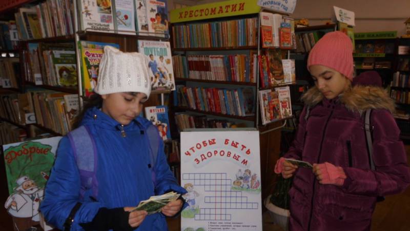 | "Здоровым быть – в радости жить" - час вопросов и ответов состоялся в районной детской библиотеке 6 декабря 2017 года. В рамках программы районной детской библиотеки популяризации здорового образа жизни «Будь здоров!», библиотекари провели час вопросов и ответов. Ребятам были заданы загадки и вопросы о пользе лекарственных растений, а также полезные рецепты для здоровья. Все читатели библиотеки получили информационные листовки по теме, каждый желающий мог разгадать кроссворд. | |