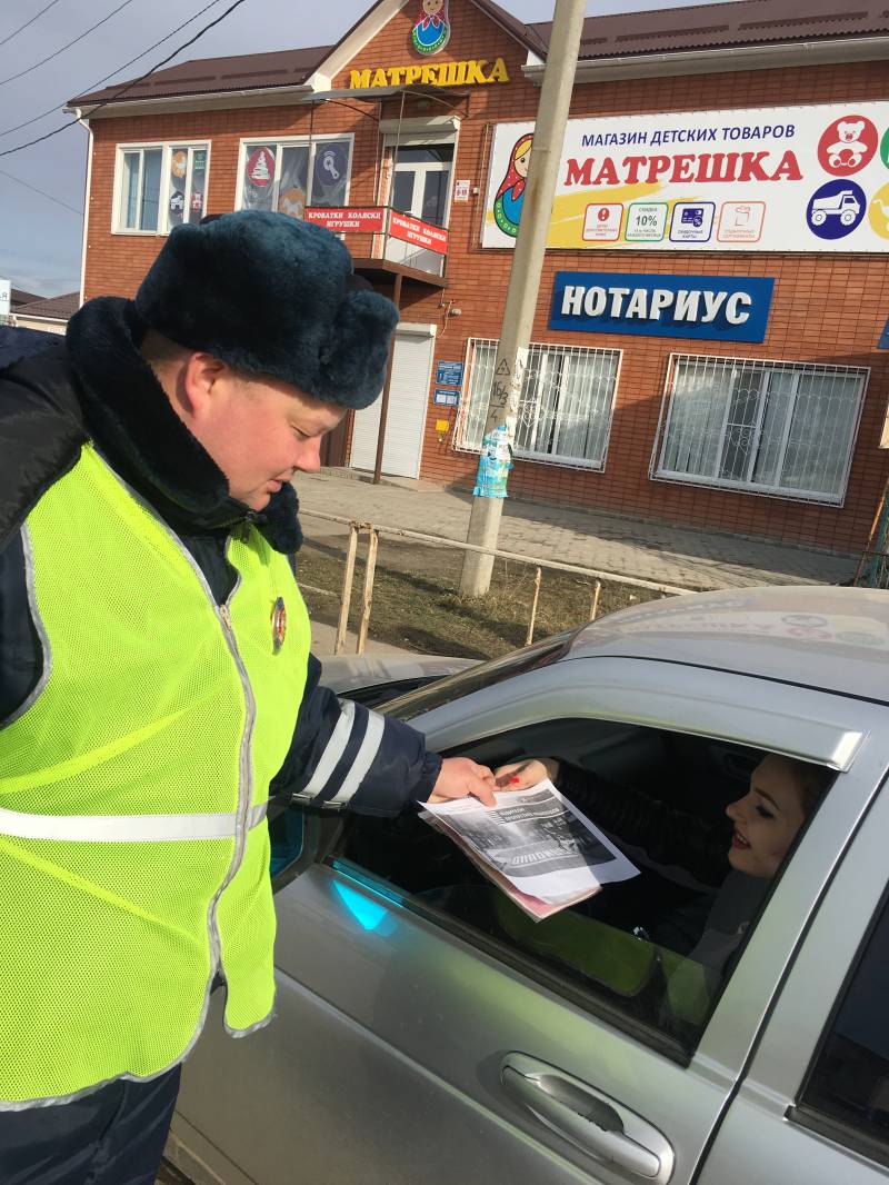 Два экипажа в составе инспекторов ОВ ДПС ГИБДД в местах с наиболее высоким транспортным потоком провели комплексные предупредительно- профилактические мероприятия, направленные на снижение уровня ДТП с участием пешеходов. Каждый водитель осведомлен о ситуации, сложившейся в Отрадненском районе с ДТП с участием пешеходов, о строгом соблюдении ПДД, по окончании бесед сотрудники Госавтоинспекции вручили водителям тематические памятки. В ходе проведения мероприятий вручено более 60-ти памяток. Пешеходам, посредством СГУ также напоминали о концентрации внимания и осторожности на улицах и дорогах района. Р.П. Теплов, командир ОВ ДПС ГИБДД ОМВД России по Отрадненскому району | |