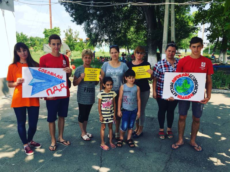 | 12 июля 2018 года на летних дворовых площадках станицы Отрадной сотрудниками ОГИБДД МВД России по Краснодарскому краю в ст. Отрадной совместно с волонтерами, активистами ООПН "Молодежный патруль Отрадненского района" молодыми депутатами Евгением Марковым и Татьяной Снежко была проведена профилактическая акция "Соблюдай ПДД". Ребятам разъяснялись правила дорожного движения, демонстрировались информационные плакаты . На зданиях и сооружениях в общественных местах расклеивались листовки. | |