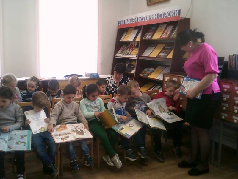 | 29 марта 2018 года в рамках плана проведения Недели детской и юношеской книги библиотекари районной детской библиотеки для воспитанников МДОУ№ 5 провели игру викторину « В стране неведомых чудес. Ребята отправились в воображаемое путешествие в мир природы. Во время игры дети узнали о жизни зверей, растений, птиц, насекомых. Далее дети проявили свои знания, отвечая на вопросы викторины о животных, угадывали звуки, издаваемые этими животными. В конце мероприятия библиотекарь познакомила детей с книгами о мире живой природы. | |