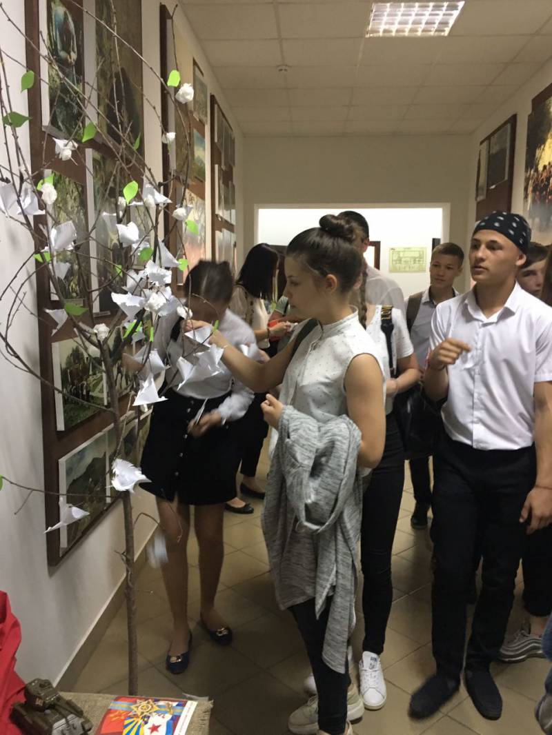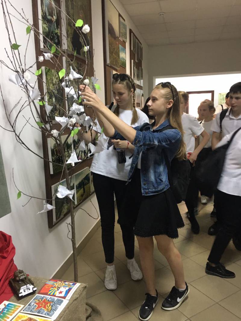 | Каждый год в майские дни наш народ вспоминает грозные годы войны, чтит память павших воинов, кланяется живым. Хотя прошло более полувека со Дня Победы, но время не властно над памятью людей разных поколений. В фойе «Отрадненской межпоселенческой центральной библиотеки» в период с 7 по 13 мая экспонируется книжная выставка и проходит акция «Белый журавль памяти». Цель мероприятия - увековечивание памяти погибших бойцов-соотечественников, а также военно-патриотическое и духовно-нравственное воспитание подрастающего поколения. Акция «Белый журавль памяти», это не только символ памяти, а в первую очередь знак благодарности погибшим войнам и первые уроки мужества для подрастающего поколения. Так 4 мая 2018 года в гости к библиотекарям МКУК «Отрадненской межпоселенческой центральной библиотеки» пришли ученики 8-х классов МБОУСОШ № 1 им. А.С. Колесника. Для ребят было подготовлено мероприятие «Нам не забыть тот 45-й». На мероприятие получила развитие тема Великой Отечественной войны в произведениях российских и кубанских писателей и поэтов. С творческими страницами поэтической летописи войны познакомили присутствующих сотрудники библиотеки. Мероприятие сопровождалось показом мультимедийной презентации «Нам не забыть тот 45-й». Звучали стихи советских, кубанских и местных поэтов, песни военных лет. А в завершение мероприятия библиотекари предложили ребятам стать участниками акции «Белый журавль памяти»: создать из бумаги белого журавля и расположить его на книжной выставке, посвященной Дню Победы. Равнодушных среди ребят не оказалось. Дети с удовольствием складывали фигурки белых журавлей, писали на них имена и фамилии своих дедов и прадедов, погибших на полях сражений, оставляли своих журавлей на дереве памяти. | |