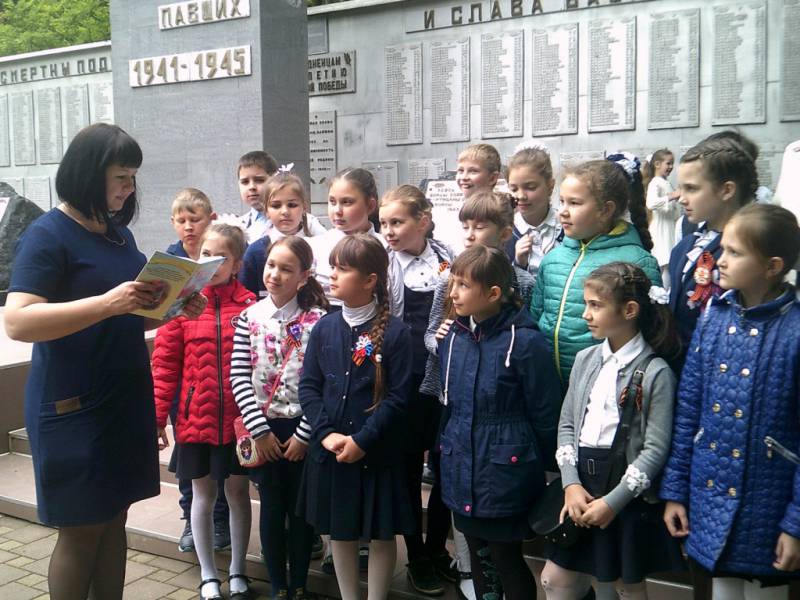 | Библиотекари районной детской библиотеки 7 мая пригласили на Аллею Славы парка ст. Отрадной учащихся 3 класса средней школы № 1 имени Колесника А.С. В преддверии празднования дня Победы Отрадненская районная детская библиотека присоединилась к IX Международной акции «Читаем детям о войне», посвященной Дню Великой Победы, инициированной Самарской областной детской библиотекой. Цель акции: воспитание патриотизма у детей и подростков на примере произведений художественной литературы о Великой Отечественной войне. На абонементе библиотеки оформлена книжная выставка «В книжной памяти мгновения войны», где представлены книги о ВОВ. Для всех читателей библиотекари проводили рекомендательные беседы и обзоры литературы, представленной на выставке. 7 мая на Аллею Славы парка ст. Отрадной библиотекари пригласили учащихся 3 класса средней школы № 1 имени Колесника А.С. После небольшого разговора о героях Отрадненцах, ребята прослушали рассказы М.Зощенко «Храбрые дети» и А.Н. Печерской «Дети – герои Великой Отечественной войны». Из рассказов ребята узнали о подвигах, которые совершали их сверстники во время Великой Отечественной войны. После прочтения отрывков дети участвовали в обсуждении и делились своим мнением о храбрости юных героев. Громкие чтения прошли у Вечного огня, ребята прочитали стихи, посвящённые погибшим в суровые военные годы. Все участники акции минутой молчания почтили память тех, кто погиб, но не отдал свою Родину на поругание врагу. В акции приняло участие 27 человек. | |