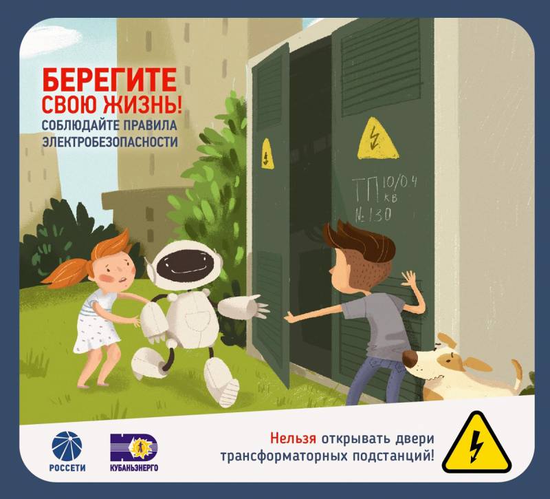 Дата публикации: 15 мая 2018 ![]() В связи с приближением летних школьных каникул Армавирский филиал ПАО «Кубаньэнерго» обращается к родителям и педагогам с настоятельной просьбой напомнить детям о смертельной опасности электрического тока, объяснить и напомнить необходимые правила поведения вблизи энергообъектов. Для многих лето – это самое долгожданное и любимое время года. Но это не только пора каникул, но и опасный период, когда дети проводят много времени без присмотра взрослых. Любопытная детвора стремится изучить все новые и неизвестные для них места, и как следствие во время летних каникул значительно увеличивается количество несчастных случаев. В этом году зафиксировано несколько несчастных случаев поражения электрическим током несовершеннолетних. В апреле в Пермском крае 14-летний подросток забрался на трансформаторную подстанцию, получил серьёзный удар током и ожог больше 50 процентов тела. В Тамбовской области подростки играли на крыше гаражей, находящихся вблизи здания закрытой трансформаторной подстанции. Один их них залез на надстройку здания подстанции и был смертельно травмирован электрическим током. В Крыму двое школьников набрасывали медную проволоку на провода линии электропередачи, в результате от поражения электротоком один погиб на месте происшествия, второй – попал в больницу. Обеспечить безопасность детей в первую очередь задача взрослых. Уважаемые родители и учителя! Еще раз проговорите с детьми следующие правила безопасности, которые должен знать каждый ребенок, выходя из дома: Нельзя взбираться на опоры ЛЭП, проникать за ограждения трансформаторных подстанций, влезать на крыши домов и строений, где поблизости проходят электрические провода. Нельзя открывать двери трансформаторных подстанций («будок») и проникать внутрь! Оборудование находится под высоким напряжением! Об опасности поражения электрическим током предупреждают специальные знаки: желтый треугольник с молнией, «Не влезай – убьет!», «Стой! Напряжение! Опасно для жизни». Нельзя запускать пиротехнику, воздушных змеев, другие летательные приспособления вблизи линий электропередачи, удить под ними рыбу. Категорически запрещено приближаться к оборванным проводам на расстояние ближе 8-10 метров. Оказавшись ближе, человек подвергается смертельной угрозе. Смертельно опасно фотографироваться (делать селфи) вблизи энергообъектов. Запрещено использовать палку для селфи (монопод) вблизи ЛЭП и энергообъектов. Запрещено набрасывать различные предметы на линии электропередачи, разжигать костры под проводами, складывать дрова, солому и другие легковоспламеняющиеся предметы. Смертельно опасно взбираться на крыши вагонов поездов: над железнодорожными путями проходят провода, по которым течет ток очень большой мощности. Для занятий спортом и подвижными играми следует выбирать места, удаленные от линии электропередачи. Следует помнить, что приближение к проводам ЛЭП на недопустимо близкое расстояние, а тем более непосредственное касание может привести к получению сильнейших ожогов, параличу жизненно важных органов, смерти. Уважаемые взрослые! Не проходите мимо, если вы видите, что несовершеннолетние приближаются к оборванным или провисшим проводам, пытаются залезть на подстанции и опоры ЛЭП, открывают двери помещений электр
