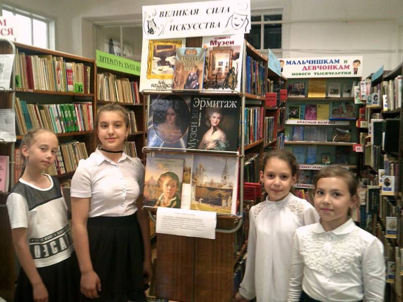 | 19 мая 2018 года в муниципальном образовании Отрадненский район состоялась международная акция «Ночь музеев 2018». Библиотеки Отрадненского района приняли активное участие в акции. С 14 по 20 мая в районной детской библиотеке была оформлена книжная выставка «Великая сила искусства» приуроченная к проведению культурной акции «Ночь Музеев-2018». На выставке представлены книги об истории музеев, искусстве, великих художниках. Особый интерес у читателей вызвала серия книг «Сказки о художниках» и «Великие русские живописцы». Библиотекари ежедневно знакомили читателей с книгами, представленными на выставке, рассказывали о проведении мероприятий в музеях и библиотеках, приуроченных к культурной акции «Ночь музеев». Так «Отрадненская межпоселенческая центральная библиотека» подготовила выставки, фото зоны, стенды, а так же не обычные викторины, которые были продемонстрированы на площади нашей станицы. Большой популярностью пользовалась фото зона «Ночь музеев в библиотеке», на фоне красиво оформленного стенда, каждый желающий мог примерить на себя образ литературного герой, будь то бальное платье, цилиндр Чацкого, или улыбку Чеширского кота из «Алисы в стране чудес». Так же на площади был представлен стенд по военной тематике «Историей дышит каждая строка», стенд «Как это было…» на котором были представлены открытки, повествующие об истории кораблей, ретро машины. Малышей на площади ждали огромные цветы – раскраски. Так же каждый желающий житель станицы мог принять участие в викторине «Свидание вслепую», книги были обернуты бумагой, и участник с помощью подсказок должен был угадать, какая книга скрывается под оберткой. Участник, который угадывал трижды, получал приз. | |
