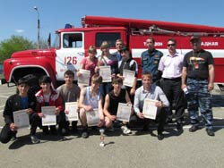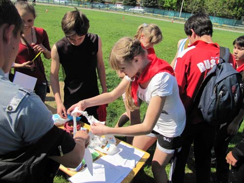 В соответствии с планом совместных мероприятий отдела образования и в целях формирования у детей и подростков сознательного и ответственного отношения к вопросам личной и общественной безопасности, проверки уровня и качества практической подготовки учащихся по программе курса ОБЖ, 28 апреля 2012 года на спортплощадке школы № 1 состоялись районные соревнования «Школа Безопасности».В соревнованиях принимали участие команды школ из станиц Отрадной, Попутной, Удобной, Спокойной, на территории которых действуют пожарные части. В организации и проведении соревнований помогали отдел ГО и ЧС, пожарная часть, отдел надзорной деятельности. Программа соревнований включала в себя комбинированную пожарную эстафету, поисково-спасательные работы, викторину по ОБЖ и конкурс приветствия и стенгазет. В упорной, интересной борьбе лучшие результаты показали команды школ №№ 1, 9, 24. Победителям и призерам соревнований были вручены грамоты и кубки. Команда СОШ № 1 в период с 14 по 18 мая 2012 года примет участие в краевых соревнованиях в Северском районе. | |