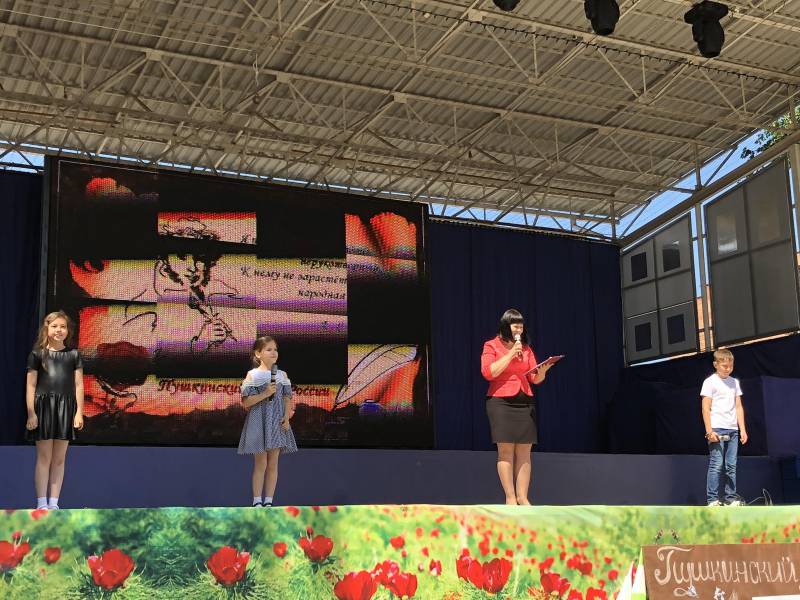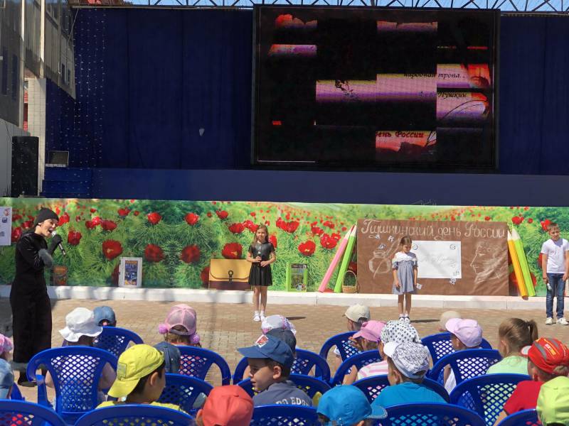 | 6 июня 2018 года, с целью популяризации лучших образцов классической русской литературы, повышения интереса к книге и чтению, формирования уважительного отношения к родной культуре и русскому литературному языку, библиотеки муниципального образования Отрадненский район стали участниками Всекубанской акции «Читаем Пушкина». Ровно в 10-00 на центральной площади станицы Отрадной началось театрализованное представление «В гостях у Лукоморья», мероприятие было организовано работниками муниципального казенного учреждения культуры «Отрадненской межпоселенческой центральной библиотекой» и районной детской библиотекой. Площадь была украшена стендами, книжными выставками, кроссвордом по сказкам А.С. Пушкина, и конечно же, электронными слайдами на главном экране станицы. В гости к воспитанникам детских садов и летних площадок пришли Кот - ученный, библиотекарь, а так же юные читатели районной детской библиотеки- это Травушкин Марк и Симоновы Настя и Рита, которые с удовольствием приняли участие в постановке. Дети играли в подвижные игры, отвечали на вопросы викторины по сказкам Александра Сергеевича Пушкина, также библиотекари предложили каждому желающему оставить свой автограф на специальном стенде, под изображением росписи А.С. Пушкина, каждый оставивший автограф получал сладкий приз. Затем для детей на большом экране демонстрировалась «Сказка о царе Салтане». Перед зданием районной детской библиотеки расположился «читальный зал под открытым небом», где вниманию читателей была представлена выставка-инсталляция «Читаем Пушкина вместе» и кроссворд «Сказки Пушкина». Все желающие декламировали самые разные поэтические творения великого поэта. Самым популярным среди юных участников марафона стали стихотворения «Зимнее утро», «Зимний вечер» и отрывок из поэмы «Руслан и Людмила» «У лукоморья дуб зеленый». А ребята постарше обратились к более серьёзному произведению - «Евгений Онегин» и прочитали отрывок из романа «Письмо Татьяны к Онегину». Самое проникновенное исполнение произведений А.С. Пушкина представили учащиеся МБОУСОШ № 1 им. А.С. Колесника Баканев Сергей (7 «А» класс) и Банных Настя (8 «Б» класс). Не обошли своим вниманием наш поэтический марафон и старшее поколение. Так очень выразительно и ярко прочитала отрывок из любимого произведения «Руслан и Людмила» Курлович Фаина Дмитриевна. В МКУК «ОМЦБ» мероприятия проходили уже для читателей старшего возраста, каждый желающий мог прочесть произведение Александра Сергеевича или поучаствовать в викторине, а тот, кто в этот день брал книгу Пушкина, получал памятный сувенир. Всего районными библиотеками в этот день обслужено 285 человек. | |