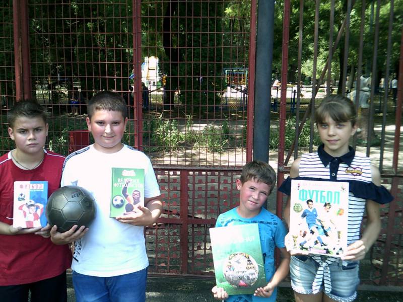 | 28 июня библиотекари районной детской библиотеки провели час информации посвященный Чемпионату мира по футболу, который в эти дни проходит в нашей стране. Мероприятие проходило в парке «Софора». В ходе вступительной беседы присутствующие познакомились с историей этого вида спорта с древности до наших дней, узнали интересные факты о футболе и знаменитых игроках, ставших легендами спорта. Дети с азартом участвовали в викторине «Футбольный тайм», в которой показали себя настоящими знатоками футбола. Прекрасным дополнением стала выставка-досье «Все о футболе», расположившаяся здесь же на скамейке. Библиотекари постарались создать положительный эмоциональный настрой и вызвать у ребят желание заниматься спортом. В информационной акции приняло участие 10 человек. | |