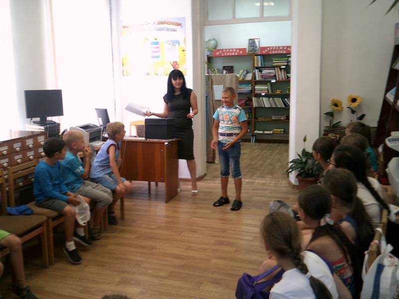 | 16 июля библиотекари районной детской библиотеки для летнего лагеря МБОУСОШ № 1 им. Колесника А. С. провели игровую программу «Вкусные истории». В начале мероприятия дети узнали интересные факты о еде. Затем ребята поделились на две команды. Каждая команда дружно выполняла задания библиотекаря: отгадывали загадки, участвовали в кулинарных конкурсах: «Кулинарная разминка, «Конфета на ниточке», «Музыкальная пауза», «Черный ящик», «Каша наша хороша». Ребята активно участвовали в конкурсе «Пойми меня», где без слов, с помощью пантомимы, жестов и движений объясняли своей команде какое кулинарное слово загадано. В конце игровой программы посмотрели мультфильм и получили сладкие призы. В мероприятии участвовало 18 человек. | |