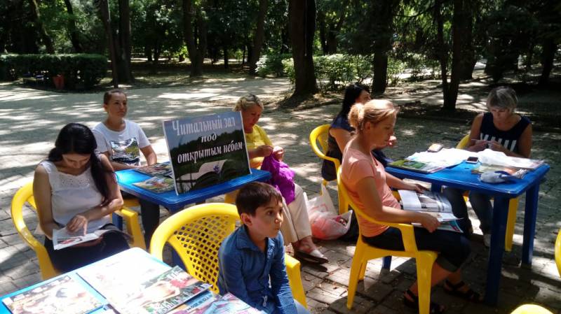 | 25 июля 2018 года в центральном парке станицы Отрадной, работники «Отрадненской межпоселенческой центральной библиотеки» подготовили и провели мероприятие - «Спасибо Вам, любимый автор!» - читальный зал под открытым небом, а так же урок здоровья - «Мой образ жизни - здоровье». Мероприятия были проведены для участников летнего лагеря Центра детского творчества ст. Отрадной, а так же для всех желающих жителей нашей станицы. Для читателей были подготовлены книжные выставки, а так же подборки периодических изданий. Каждый участник читального зала мог рассказать о своем любимом авторе и порекомендовать его к прочтению. Маленькие участники мероприятия узнали о правилах здорового образа жизни, а так же поиграли в подвижные игры, ответили на вопросы викторины, рассказали о своем любимом виде спорта. Мероприятия прошли весело и интересно. | |