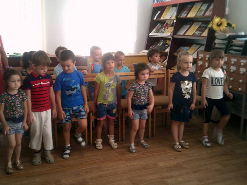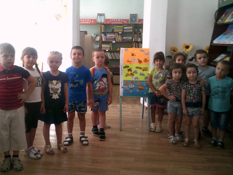 | 02.08.2018г библиотекари районной детской библиотеки провели познавательную игру-викторину «Разноцветный постовой» для старшей группы детского сада № 5 . Дети узнали, для чего нужен светофор, а также разобрали правила поведения пешеходов на дорогах. На мероприятии ребята отгадывали загадки про транспорт, участвовали в дорожной эстафете, выполняли интересные задания по правилам дорожного движения. Затем ребята распределили транспорт по назначению. В конце мероприятия посмотрели поучительный мультфильм «Азбука безопасности на дороге». В мероприятии участвовало 14 человек. | |