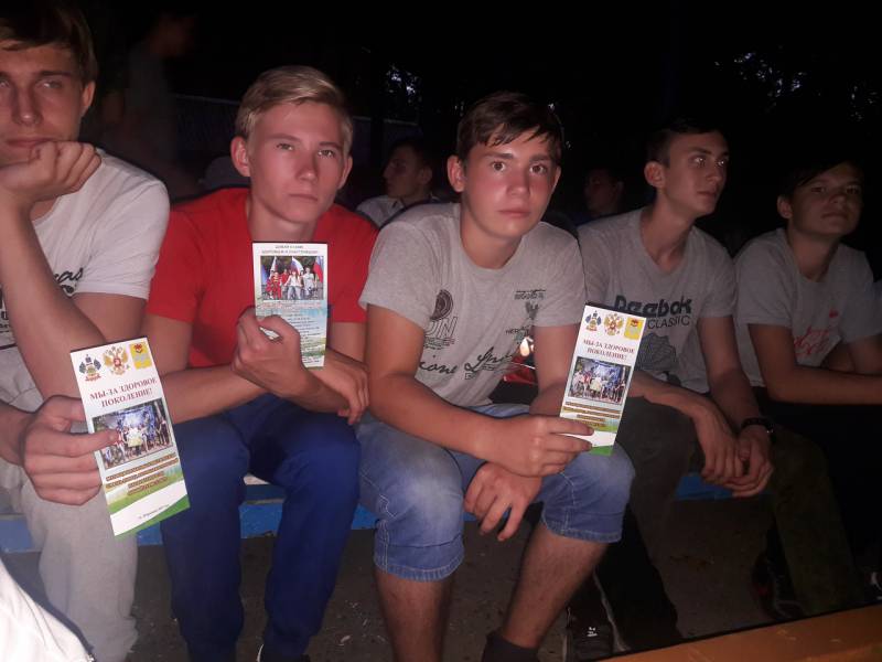 | Туристическая смена антинаркотической направленности "Юный турист-2018" в детском лагере "Тополек" продолжается. 17 и 20 августа ребята смотрели фильм антинаркотической направленности, где в качестве экспертов выступили: кандидат медицинских наук, врач-психиатр нарколог МБУЗ "Отрадненская ЦРБ" В.Е. Беспамятнов, Начальник Отделения наркоконтроля Отдела МВД России по Отрадненскому району М.А. Бондаренко, секретарь антинаркотической комиисси по Отрадненскому району - В.В. Иванова и директор районного Молодежного центра А.А. Ковалева. После обсуждения экспертами ребятам были розданы цветные флаеры о ближайших мероприятиях проходящих в МКУ "КДМ МООР" и МКУ "Молодежный центр МООР". А после ребят ждала дискотека. | |