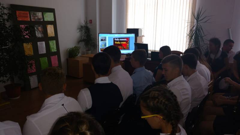 | Согласно сложившейся традиции, 1-го сентября во всех российских школах классный урок является тематическим и, как правило, отличается ярко выраженным патриотическим характером. На основании письма министерства образования, науки и молодежной политики Краснодарского края от 22.08.2018 № 47-13-16849/18 «О направлении информации», рекомендовано провести 1 сентября 2018 г. «Урок мужества», посвященный 75-летию освобождения Краснодарского края от немецко-фашистских захватчиков и битвы за Кавказ. В связи работники МКУК «Отрадненской межпоселенческой центральной» и районной детской библиотек подготовили и провели сразу несколько мероприятий, которые прошли все под одним названием «75 лет со дня освобождения Кубани от немецко-фашистских захватчиков» - всекубанский классный час. Районную детскую библиотеку посетили ученики 3-го класса МБОУСОШ № 1 им. А.С. Колесника. На мероприятии ребята познакомились с историческими фактами о времени оккупации Краснодарского края, узнали о зверствах, чинимых фашистами на нашей земле, статистических данных о потерях и трудностях восстановления края. Большой интерес у ребят вызвала книжная выставка «И в книжной памяти мгновения войны» и электронная презентация «Помним подвиг земляков». Мероприятие получилось живым и насыщенным. В зале библиотеки звучали истории о судьбах людей, переживших жестокое испытание войной, что позволило взглянуть на историческое событие, освобождение от немецко-фашистских оккупантов, «изнутри», восстановить хронику исторических событий Родины, Кубани. Гостями МКУК «ОМЦБ» в этот день стали ученики 9-го и 10-го классов МБОУСОШ № 1 им. А.С. Колесника, а так же библиотекарь посетила МБОУСОШ № 16 и провела мероприятие для учеников 8-го класса. Классный час для старшеклассников был посвящен героям Великой Отечественной войны, в честь которых названы улицы города Краснодара. Ребята узнали, что одной из первых улиц, которая была названа в честь героев Великой Отечественной, была улица братьев Игнатовых. «Побывали» на улице Бершанской, которая находится в микрорайоне Пашковском. Раньше это была станица, здесь располагался авиаполк знаменитой летчицы. Библиотекарь рассказала о том, что 3а время Великой Отечественной Бершанская Е.Д. и ее отряд участвовали в освобождении Северного Кавказа, Крыма, Белоруссии, Польши. Долетели до Берлина. Отряд состоял из девчонок от 16 до 20 лет. Никаких поблажек не было, наоборот. Если в среднем до своей гибели пилот совершал 25 боевых вылетов, а потом его списывали, то полк Бершанской только за ночь выходил в небо по девять раз. Мероприятие сопровождалось электронной презентацией, а так же документальными видеороликами. Всего в этот день на мероприятиях библиотекарей присутствовало около 100 человек. | |