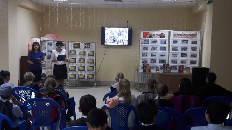 | В муниципальном казенном учреждение культуры «Отрадненской межпоселенческой центральной библиотеке» продолжается цикл мероприятий, посвященный освобождению Кубани от немецко-фашистских захватчиков. Так, 12 октября в диско-зале РДК состоялась литературно-тематическая композиция – «Спасибо всем, кто помнит». Мероприятие посетили ученики МБОУСОШ № 1 им. А.С. Колесника. Освобождение Кубани от немецко-фашистских захватчиков и завершение битвы за Кавказ 9 октября 1943 года важная дата для всего Краснодарского края, России и нашего района, мы не должны забывать об этом никогда. Библиотекари напомнили ребятам о том, что 1943 год навсегда останется в памяти кубанцев. Дорогой ценой досталась нам радость освобождения. Фашистская оккупация стала страшным испытанием для людей, враг нанес огромный хозяйственный и экономический ущерб Кубани. Жители не покорились, не смирились, они проявили стойкость и мужество, сохраняя веру в Победу. Инспектор ПДН рассказал о ветеранах МВД. Мероприятие сопровождалось электронной презентацией, видео материалами, а так же для ребят были подготовлены информационные стенды повествующие о поэтапном освобождение Кубани от немецко-фашистских захватчиков. В завершение мероприятия ребята поклялись, что всегда будут помнить о подвигах своих земляков. | |