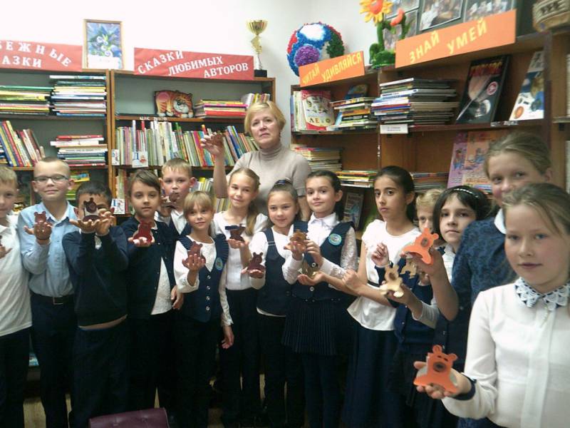 | Среди разнообразных форм работы библиотек существует такая форма работы, как клубы по интересам. Сегодня потребность в таком виде отношений между людьми возрастает. Они знакомятся с новыми книгами, журналами, получают необходимые знания, сами делятся опытом, помогают советами другим, находят друзей. Клубы по интересам оперативно шагают в ногу со временем, дают возможность соединить чтение с творческой деятельностью. 23.10.2018 года на очередном заседании клуба «Мастерская чудес» ученики второго класса МБОУСОШ № 1 имени Колесника А.С. сделали с библиотекарем бурого медведя. Этот персонаж – настоящий символ бескрайних снежных просторов и лютых морозов, мужественности и стойкости. А для детей это просто очень симпатичный, пушистый, немного неуклюжий, но невероятно притягательный зверь. В процессе работы библиотекарь рассказала ребятам занимательные факты о жизни медведей, дети вспомнили художественные произведения, героями которых были медведи. Поделка выполнена из цветного картона при помощи ножниц и клея. Ребята работали увлечённо и весело. В мероприятии приняли участие 20 детей. | |