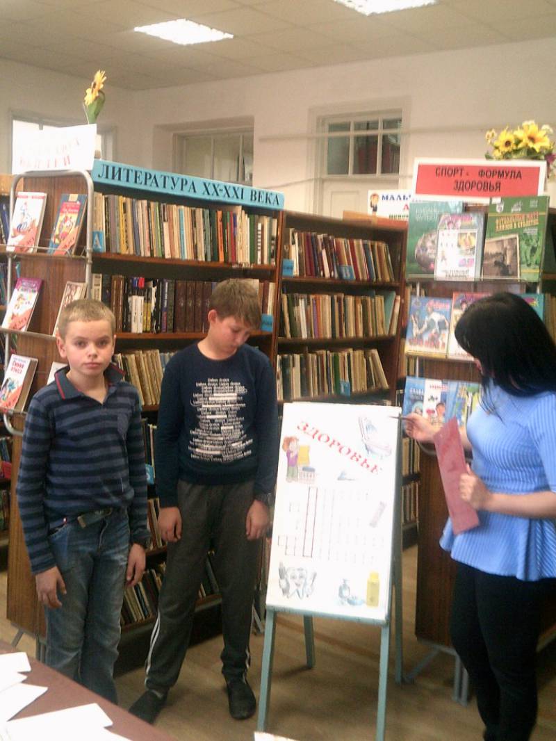 | 24 октября в рамках программы здоровья Районной детской библиотеки по популяризации здорового образа жизни «Будь здоров» библиотекари районной детской библиотеки провели кроссворд - викторину «Твори свое здоровье сам». Библиотекари с ребятами говорили о том, что хорошее здоровье – основа долгой, счастливой и полноценной жизни. Разгадывая кроссворд, обсуждали, что полезно, что вредно для здоровья, слушали советы библиотекаря по охране здоровья, предупреждению вредных привычек, приводили примеры жизненных ситуаций, комментировали пословицы о здоровье. Во время беседы библиотекарь рассказала ребятам о книгах, представленных на книжной выставке «Спорт - формула здоровья», которые способствуют формированию здорового образа жизни. В мероприятии приняло участие 13 человек. | |