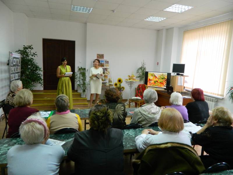 | При Муниципальном казенном учреждении культуры «Отрадненская межпоселенческая центральная библиотека» с июля 2018 года работает клуб по интересам «Серебряная нить». Клуб является добровольным общественным объединением тружеников тыла, участников боевых действий, ветеранов военной и государственной службы, ветеранов труда, пенсионеров. Руководитель клуба – библиотекарь отдела обслуживания МКУК «ОМЦБ» И.М. Зуева. Цель клуба - вовлечение пожилых людей в активную культурно-творческую деятельность и удовлетворение их духовных запросов, осуществление преемственности поколений и социализации ветеранов. Тематическая направленность клуба: организация общения и содержательного досуга людей старшего поколения. 25 октября состоялась очередная встреча членов клуба «Серебряная нить» в читальном зале МКУК «Отрадненская межпоселенческая центральная библиотека», оформленном под литературно-музыкальную гостиную «Осенний блюз». Задушевным, лиричным настроением пронизан весь праздник, в центре которого наша русская Осень. Для создания её многогранного образа библиотекари обратились к лучшим стихотворениям русских поэтов, не забыв при этом и поэтов нашей малой Родины. Украшением гостиной стали и замечательные репродукции русских пейзажистов. И, конечно же, шедевры мировой музыкальной классики, прозвучавшие на мероприятии, внесли свою ноту в общую тональность литературной гостиной. Красивая пора – Осень! Хочется о ней говорить еще и еще! Многие поэты и художники посвятили этой красоте свои стихи и холсты! Все участники литературной гостиной смогли еще раз соприкоснуться с прекрасными словами и картинами, душевными произведениями, завораживающей музыкой и, более того, при помощи слов смогли сами создать прекрасную осеннюю картину, участвуя в репортаже «Зарисовки Осени». Открывая для себя прекрасный мир поэзии, появляется возможность увидеть наш мир другими глазами – радостным, красивым, удивительным и счастливым. | |