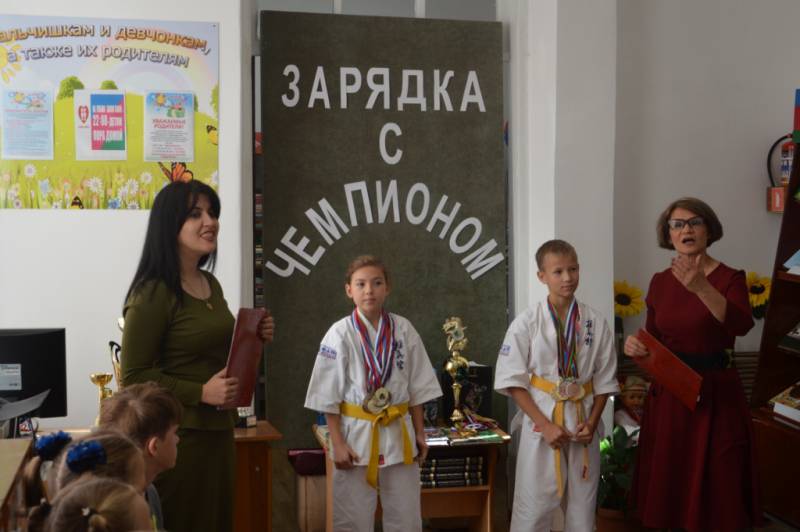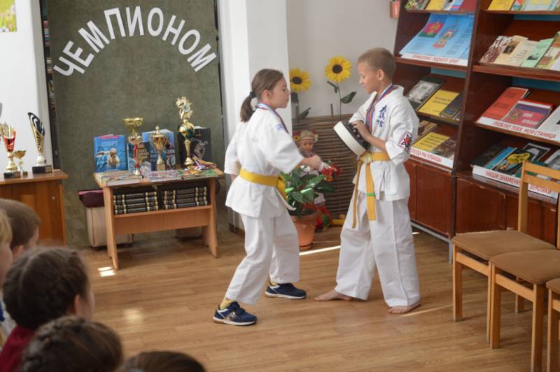 Дата публикации: 1 ноября 2018 ![]() ![]() ![]() ![]() ![]() «Старт здоровью детей!» под таким девизом 1 ноября 2018 года состоялся краевой марафон для читателей детских библиотек и библиотек, обслуживающих детское население Краснодарского края. Организаторами являлась Краевая детская библиотека имени братьев Игнатовых. Библиотеки муниципального образования Отрадненский район уже второй год принимают участие в этой акции, к которой в этом году присоединилось 25 учреждений. Мероприятие в районной детской библиотеке стартовала, как и было запланировано в 10:00, 1 ноября. Перед учащимися 3 «В» класса МБОУСОШ №1 имени А.С. Колесника выступили воспитанники детской спортивной школы «Олимпия» секции карате: пятикратная чемпионка Краснодарского края по киокусинкай карате Симонова Анастасия и трехкратный чемпион Краснодарского края по киокусинкай карате Макаренко Руслан. В начале спортивного праздника чемпионы рассказали ребятам о том, как они пришли в спорт, о своих первых победах и поражениях, о том, как спорт помог им в жизни и учебе. Настя и Руслан показали несколько основных приемов карате и провели с детьми зарядку. В ходе мероприятия выяснилось, что среди учащихся 3 класса есть тоже чемпионы в разных видах спорта.: Дашкова Александрина - обладательница кубка за 1 место конкурса «Верь в свою звезду» по воздушной гимнастике, Шеховцов Багдан – чемпион Краснодарского края по карате. В заключение литературно-спортивного праздника библиотекари познакомили всех присутствующих с материалами книжной выставки «О спорте», затем был продемонстрирован социальный видеоролик «Спорт – это все». В мероприятии приняло участие 26 человек. Библиотекари Удобненской с/б провели мероприятия в рамках марафона на улице, где была проведена физкультминутка и литературная викторина. Присутствовало 25 человек. Библиотекарь Урупской с/б посетила среднюю группу МБДОУ № 36 поселка Урупский. И провела с ребятами зарядку, спортивную эстафету и литературную викторину. Попутненской сельской библиотекой для школьников был проведен урок здоровья «В здоровом теле – здоровый дух». Библиотекарь Наталья Алпатова рассказала школьникам о том, что здоровье – самое ценное, что есть у человека. Поэтому необходимо заниматься спортом. В ходе мероприятия библиотекарь раздала информационные листовки с правилами здорового образа жизни. | ||||||||||||||||||||||||||||||||||||||||||||||||||||||||||||||||||||||||||