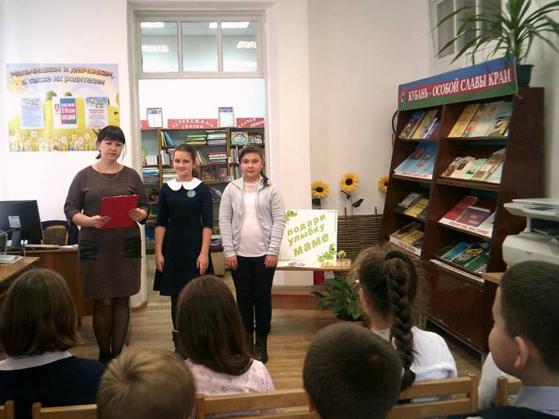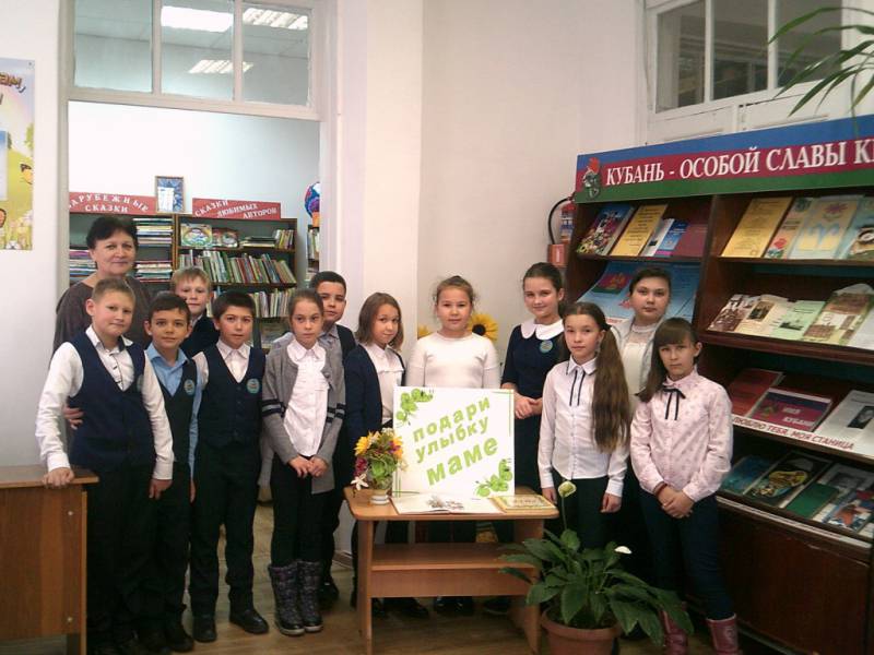 | 21 ноября библиотекари районной детской библиотеки для учащихся 4 класса МБОУСОШ № 1 имени А.С. Колесника провели литературный час - «Подари улыбку маме». Мероприятие проходило в рамках цикла "Мамам посвящается". Библиотекарь познакомила ребят с историей возникновения праздника - День матери, в нашей стране и в других странах.Вместе с детьми вспомнили пословицы, провели конкурс «знаете ли вы качества, присущие маме?», «собери пазлы», ответили на загадки, ребусы, зачитали отрывок из книги В. В. Голявкин «Удивительные дети", а так же прозвучало стихотворение Е. А. Благининой «Вот какая Мама». | |