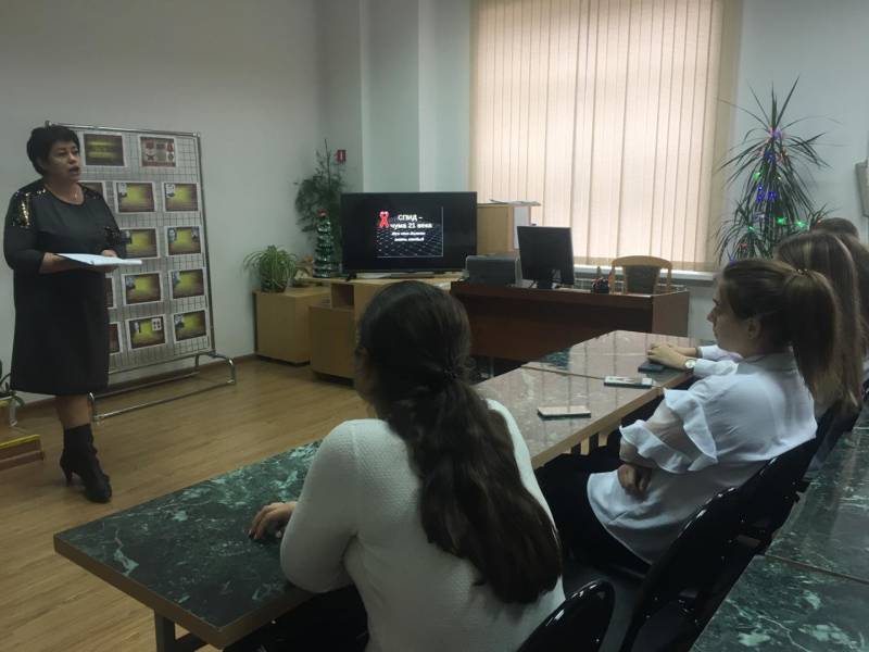 | 1 декабря - Международный день борьбы со СПИДом. Эта дата ежегодно призывает всю мировую общественность не просто помнить об этой пока что неизлечимой болезни, но и быть терпимыми к тем, кто уже является переносчиком этого заболевания. Работники «Отрадненской межпоселенческой центральной библиотеки» продолжают проводить информационно - разъяснительную работу среди подростков с целью формирования потребности в ведении здорового образа жизни. «Бояться не нужно, нужно знать» - под таким названием состоялся информационный час в МКУК «ОМЦБ» 6 декабря 2018 года, гостями библиотеки стали ученики 9 «Б» и 10 «В» класса МБОУСОШ № 1 им. А.С. Колесника. Подростки узнали о том, что Всемирный День борьбы со СПИДом появился, чтобы привлечь внимание мировой общественности и просто людей к проблеме СПИДа, ценности человеческой жизни. В доступной форме библиотекарь рассказала подросткам о вреде, который приносит наркомания, об опасных последствиях первого употребления наркотических веществ. Мероприятия сопровождалось презентацией «Угроза СПИДа и наркомании». Ребята получили знания, которые им помогут в будущем сделать верный выбор в пользу здоровья. В мероприятии приняло участие 30 человек. | |
