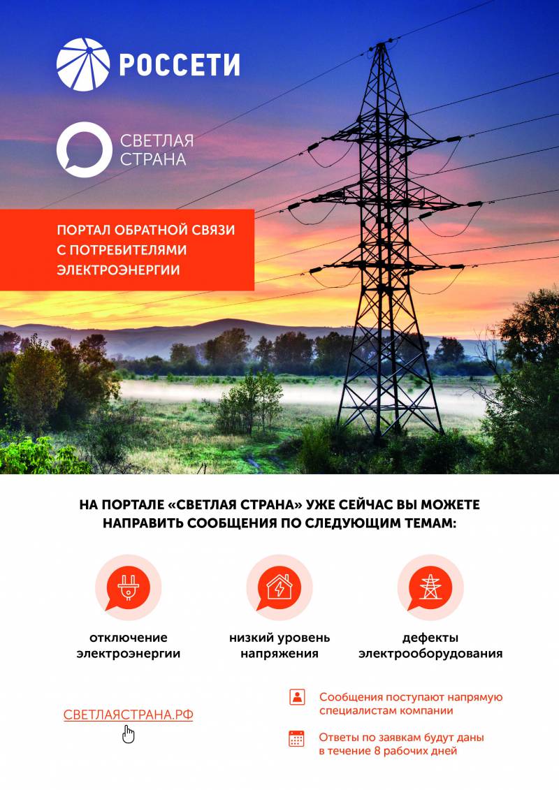 Портал «Светлая страна» позволит оперативно решать проблемы потребителей электроэнергии |