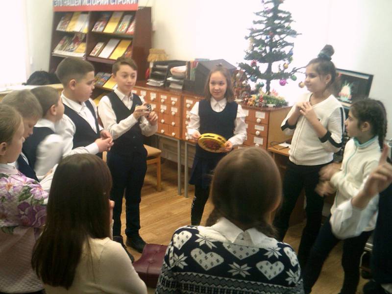 | 9 января в районной детской библиотеке проведено мероприятие «Под Рождественской звездой» для учеников 4 класса МБОУ СОШ №1 имени Колесника А.С. Игровая программа началась с рассказа библиотекаря об истории, традициях празднования Рождества и святок. По традиции в эти дни с подарками и песнями посещают дома родных, близких, знакомых. Во время святок проходят также посиделки, на которых собираются девушки и парни, играют в обрядовые игры. Во время святочных посиделок обязательно устраиваются театральные народные игры с песнями, в которых принимают участие ряженые, а девушки поют особые святочные песни. Вторая часть мероприятия была развлекательной. Ребята с удовольствием играли, отгадывали весёлые загадки, водили хоровод. В мероприятии участвовало 11 человек. | |