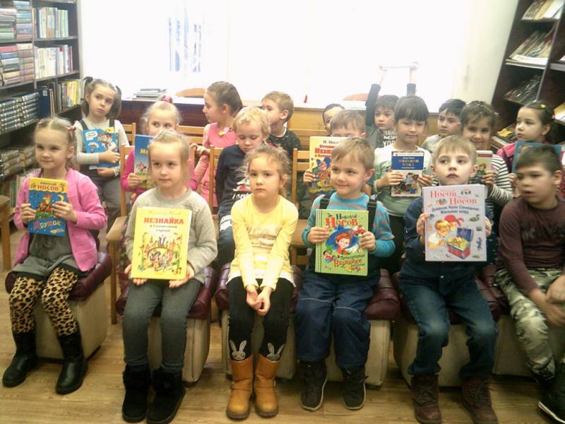 | 22 января в районной детской библиотеке для воспитанников МБДОУ №8 прошел литературный час «Будем знакомы: писатель Носов». Юные читатели вместе с библиотекарем совершили литературное путешествие по творчеству детского писателя Николая Носова. Ребятам показали презентацию о творчестве писателя. С интересом и улыбкой дети слушали комментированное чтение рассказов: «Огурцы», «Фантазёры» и сделали для себя важные выводы: нельзя обманывать, брать чужое, обижать младших. Литературная игра «Угадай предмет» помогла детям вспомнить такие рассказы писателя, как: «Телефон», «Мишкина каша», «Автомобиль». Далее ребята с удовольствием приняли участие в игровой программе «Незнайка и его друзья». В конкурсе «Аукцион имён» дети вспомнили имена весёлых и шумных коротышек и назвали имя самого известного из них – Незнайка. В конце путешествия просмотрели мультфильм «Бобик в гостях у Барбоса». | |