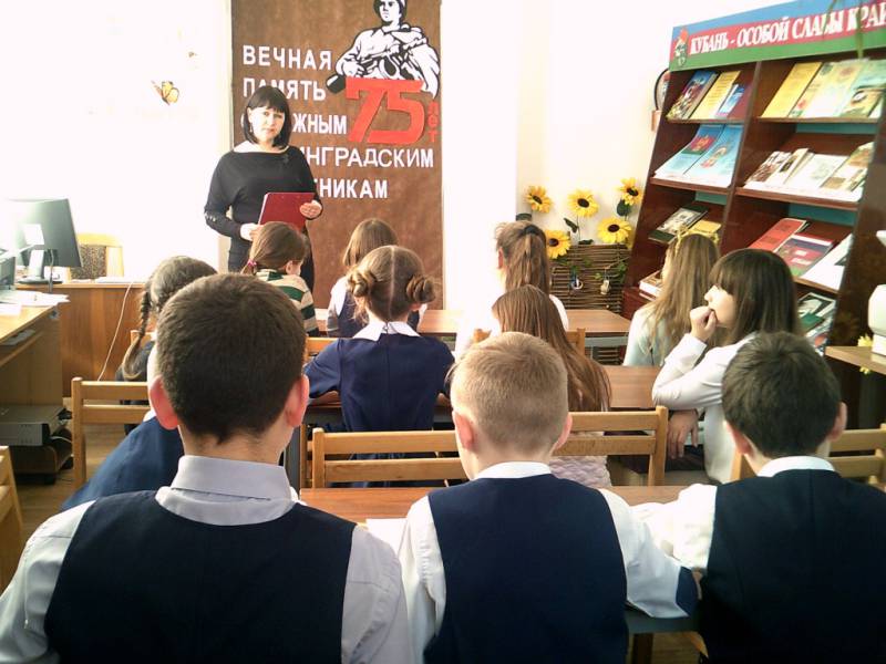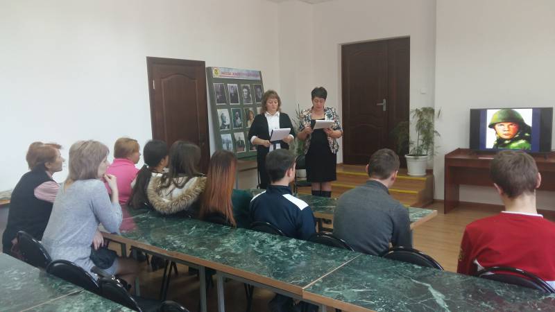 Дата публикации: 15 февраля 2019 ![]() ![]() ![]() ![]() ![]() В рамках месячника оборонно - массовой и военно - патриотической работы библиотекари МКУК «ОМЦБ» и районной детской библиотеки провели 6 массовых мероприятий. 12 февраля для воспитанников центра детского творчества библиотекари районной детской библиотеки провели час истории «Эхо Афганской войны». Ребята узнали о причинах ввода советских войск в Афганистан, о совместных военных действиях советских войск и правительственных войск Афганистана, о мужестве и отваге, о трудных условиях, в которых приходилось воевать и о помощи, оказываемой советскими воинами местным жителям. О войне говорить тяжело, но мы не имеем права забывать о ней. 12 февраля для учащихся МАУ СОШ № 9 прошло мероприятие «Город материнской славы», посвящённый подвигу Епистинии Фёдоровны Степановой. Библиотекари познакомили школьников с историей жизни семьи Степановых, о подвиге женщины - матери, вырастившей и воспитавшей верных сыновей Родины, которые отстояли её свободу и независимость. 13 февраля в читальном зале МКУК «ОМЦБ» для учащихся вечерней школы, библиотекари провели литературно-тематический журнал «Вспомним товарищ, мы Афганистан». Мероприятие сопровождалось чтением стихотворений, просмотром музыкальных роликов с песнями той войны, просмотром документального ролика с историческими фактами конфликта, затянувшегося на 10 лет. Библиотекари рассказали о героях того времени, получивших высшие награды Родины. В заключительной части мероприятия вспомнили о земляках отрадненцах, погибших в Афганистане. 13 февраля 2019г. библиотекари МКУК «ОМЦБ» провели час мужества «Афганистан… дни, ушедшие в вечность» для учащихся 5-го и 7-го класса МБОУ СОШ№ 2 ст. Попутной. Почетным гостем мероприятия стал ветеран Афганской войны Чнавоян Артем Мясникович, который рассказал ребятам о своих друзьях, с которыми служил, о солдатских буднях, о том, как прошла молодость на полях сражений. В этот же день библиотекари районной детской библиотеки для учащихся 4 «Б» класса МБОУСОШ №1 имени Колесника А.С. провели урок мужества «Священная война великого народа». Библиотекарь рассказала ребятам историю Великой Отечественной войны, о чудовищном военном времени, коварных замыслах немецких захватчиков, патриотизме и героизме советского народа о том, как народ трудился в тылу и как пришёл к победе. В конце мероприятия учащиеся посмотрели видео - хронику военных лет. 15 февраля работники МКУК «ОМЦБ» для курсантов ДОСААФ провели час мужества - «Годы войны в Отрадненском предгорье». Мероприятие было посвящено подвигам, которые совершили наши земляки на фронтах Великой Отечественной войны. Школьники узнали о мужестве, стойкости, патриотизме которые проявили: Д. Ф. Лавриненко, К.П. Варфаломеев, Г. В. Москаленко, И. В.Пащенко. Ребятам были продемонстрированы портреты героев, хроники военных лет. В заключении учащимся была представлена книга С.К. Филлипова «Не померкнет никогда» с повестями о Героях Советского Союза Д.Ф.Лавриненко, К.П. Варфаломееве, детях блокадного Ленинграда эвакуированных в наш район во время войны. | ||||||||||||||||||||||||||||||||||||||||||||||||||||||||||||||||||||||