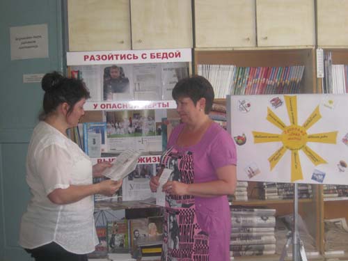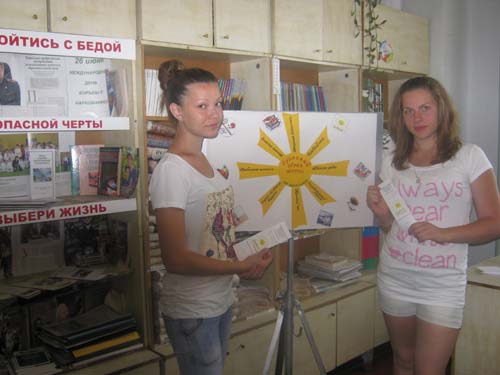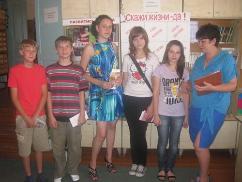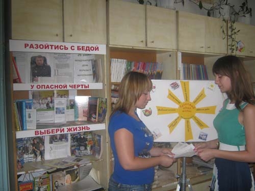 В рамках цикла «Марафон здоровья»- акция «Выскажи свое мнение «Наркотики это...» прошла в Отрадненской межпоселенческой центральной библиотеке 26 июня 2012 года в которой приняло участие 30 человек.Каждый человек высказался о вреде наркотиков. Всем принявшим участие в акции были вручены календари, листовки и сувениры. | |