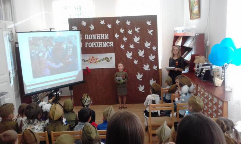 | В нашей стране много праздников, но самый великий – только один. Это 9 мая – День Победы в Великой Отечественной войне. День Победы остаётся самым светлым, дорогим и любимым праздником. В преддверии этого светлого и памятного дня в районных библиотеках были проведены мероприятия посвященные этой великой дате. Война прошла через каждую семью в нашей стране. Брестская крепость, Москва, Севастополь и Одесса, Киев и Минск, Новороссийск, города на Волге и Неве, Смоленское сражение и Тульская оборона навсегда сохранят память о бесстрашии и стойкости защитников Родины. И неспроста этим городам и крепости было присвоено звание «героя». Библиотекари поздравили ребят с 74 - летием Великой Победы, рассказали им о том, какой ценой она была завоевана. О том, что День Победы был и остается священным днём для всех людей нашей страны. В рамках цикла мероприятий «Эхо войны и память сердца» 6 мая библиотекари МКУК «ОМЦБ» для воспитанников МБОУ СОШ №16 провели устный журнал «Войной изломанное детство». Говорят, дети не помнят зла. Слово «детство» мы всегда привычно соединяем со словом «счастье». Но есть целое поколение людей, которое предпочитает без нужды не вспоминать о том, что было с ними в детстве. Это люди, чье детство пришлось на тяжкие годы фашистского нашествия. А среди них дети блокадного Ленинграда. Весной 1942 года около 30 детских домов Ленинграда были эвакуированы через Ладогу в Краснодарский край. Во многих из них большая часть детей была ясельного и детсадовского возраста. В Передовском спецдетдоме находилось 82 ребенка из Ленинграда, в Попутненском - 84. Директором Передовского спецдетдома была Юлия Ивановна Белоруссова, человек безгранично преданный детям. Библиотекарь рассказала о детях блокадного Ленинграда, радушно принятыми районом в годы войны. О самоотверженности Ю.И. Белоруссовой и сотрудников детского дома, сумевших выходить истощённых, больных детей-блокадников. Мероприятие сопровождалось презентацией и хрониками военных лет. Так же 6 мая, в преддверии праздника Победы, библиотекари районной детской библиотеки, для воспитанников МБДОУ№5 провели час памяти «Имена на обелисках» и посетили аллею героев возле памятника Вечный огонь. В ходе мероприятия ребятам было рассказано, какой ценой была завоевана наша Победа, о том, что война это бесстрашие защитников Бреста, это 900 дней блокадного Ленинграда, это клятва панфиловцев: «Ни шагу назад, за нами Москва!», это добытая огнем и кровью победа под Сталинградом, это подвиг героев Курской дуги, это штурм Берлина, это память сердца всего народа. У Вечного огня так же прошли громкие чтения. Ребята прочитали стихи, посвящённые погибшим в суровые военные годы. Все участники акции почтили память тех, кто погиб минутой молчания и возложили цветы к вечному огню. «Если птицы поют и не слышно войны…!», так назывался конкурс чтецов, посвященный Дню Победы, среди воспитанников МБДОУ №5 «Теремок» и МАДОУ №8 «Сказка». Инициаторами конкурса были районная детская библиотека и МБДОУ №5 «Теремок». Конкурс чтецов проводился с целью воспитания чувства патриотизма у детей, пропаганды поэтического и художественного слова, эстетического вкуса, формированию способности чтения наизусть. Стихи о войне, мужестве, мире и дружбе прозвучали в исполнении средней, старшей и подготовительной групп. Выразит