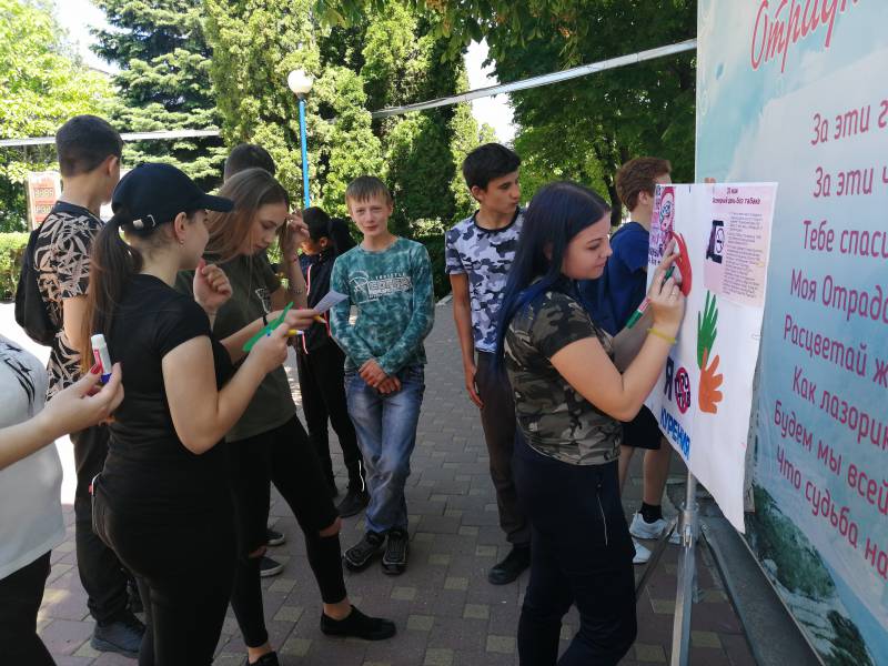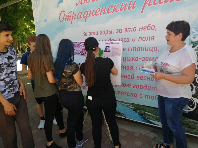 | Ежегодно 31 мая Всемирная организация здравоохранения и партнеры отмечают Всемирный день без табака, привлекая внимание к связанным с употреблением табака рискам для здоровья и к эффективным мерам политики по снижению уровня потребления табака. К акции против курения присоединилась МКУК «Отрадненская муниципальная центральная библиотека». Ребятам предлагали оставить свой автограф в виде ладошки, на баннере «Я против курения». Мальчишки и девчонки получили листовки с информацией о «Дне против курения». А так же в ходе акции ребята и библиотекарь размышляли над проблемой табакокурения, её фатальном влиянии не только на организм непосредственного курильщика, но и на окружающих его людей. Было рассказано о том, какие болезни вызывает сигарета и сколько различных ядов она содержит. Также они узнали, что не бывает так называемых «лёгких» сигарет и все они независимо от фирмы изготовителя и марки несут одинаковый вред. Обсудили тему важности спорта и физической культуры для сохранения и укрепления здоровья. Ребята согласились с тем, что наше здоровье во многом зависит от правильного образа жизни, а занятия спортом полезны для здоровья и являются прекрасной альтернативой вредным привычкам. В акции участвовало 30 человек. | |