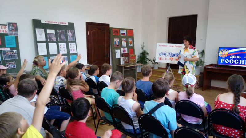 Дата публикации: 11 июня 2019 ![]() ![]() ![]() ![]() ![]() 12 июня наша страна отмечает День независимости России. Это самый молодой, но и самый торжественный национальный праздник. Для всех, кто любит свою Родину, этот день очень важен. Эта особенная дата для всего русского народа, день гордости за Российскую Федерацию. Накануне главного праздника страны в районных библиотеках прошли мероприятия. 11 июня библиотекарь МКУК «ОМЦБ» для детей, посещающих летнюю площадку центра детского творчества, провела литературно - интеллектуальную программу - «Вот она Россия, даль безбрежная...». Библиотекарь поздравила всех присутствующих с этим замечательным праздником и рассказала о трудном пути становления государства Российского, о верности и мужестве сыновей России, о дружбе и единстве её народа, рассказала ребятам об истории праздника и предложила ответить на вопросы викторины. Отвечая на различные задания, дети совершили увлекательное путешествие по России. Они вспомнили символы нашей Отчизны, основные исторические события, народные традиции и обычаи, называли великих людей России. На мероприятии ребята узнали много нового и интересного. В библиотеке к празничной дате оформлены тематические, информационные выставки. В этот знаменательный день в районной детской библиотеке оформлена книжная выставка – рассказ «Отечество. Время. История. Лица». Вниманию читателей представлена литература, рассказывающая об истории праздника, о русской государственности, о великих и знаменитых именах России. После беседы с библиотекарем каждый читатель получил информационную листовку «12 июня – День России». Для воспитанников МБДОУ №8 библиотекари провели познавательный час «Россия - великая судьба». Рассказали ребятам об истории возникновения этого молодого праздника, о главных символах России: гербе, флаге, гимне; об истории их создания, о необходимости уважительного отношения к государственным символам России, о народах России, проживающих в нашей стране, каждый из которых имеет свою культуру, песни, музыку, обряды и обычаи и все это объединяется под единственным словом – Россия. А затем дети посмотрели замечательные мультфильмы из серии «Гора самоцветов». Всего районными библиотеками в этот день было обслужено 92 человека. | ||||||||||||||||||||||||||||||||||||||||||||||||||||||||||||||||||||||